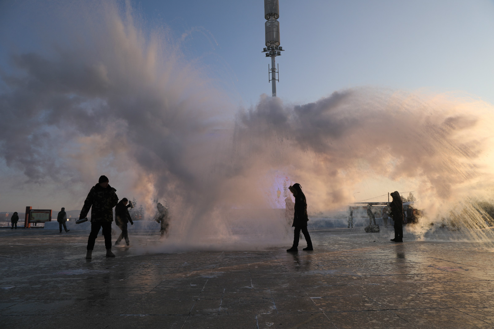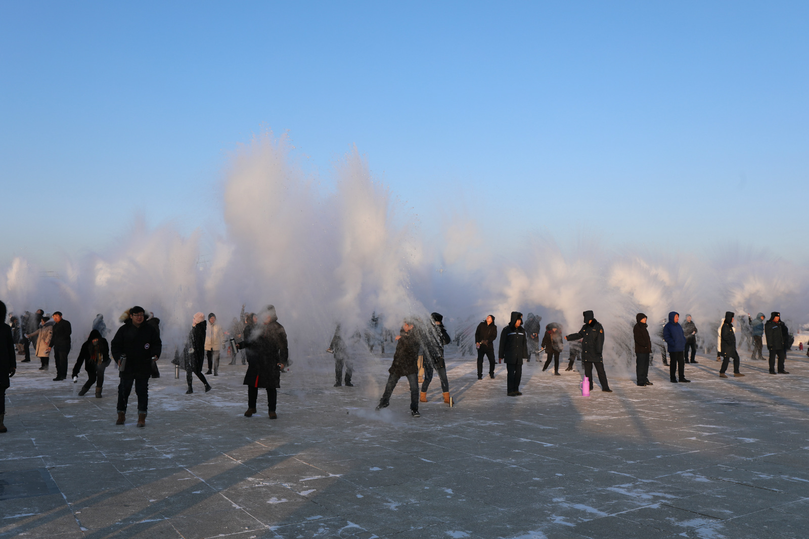 冬至是極寒天氣的開始,是體驗「潑水成冰」的最佳時節。在極寒低溫下,將開水用力潑出,水呈拋物線的軌跡在空中划出一個圓,水和熱氣被瞬間凝結成冰霜、冰凌,在空中擴散成煙花一般的炫爛,寓意着最寒冷的季節冰花盛開,能驅散寒冷,祈求潑去一年的不順和不如意,祝願明年風調雨順、身體康健。
