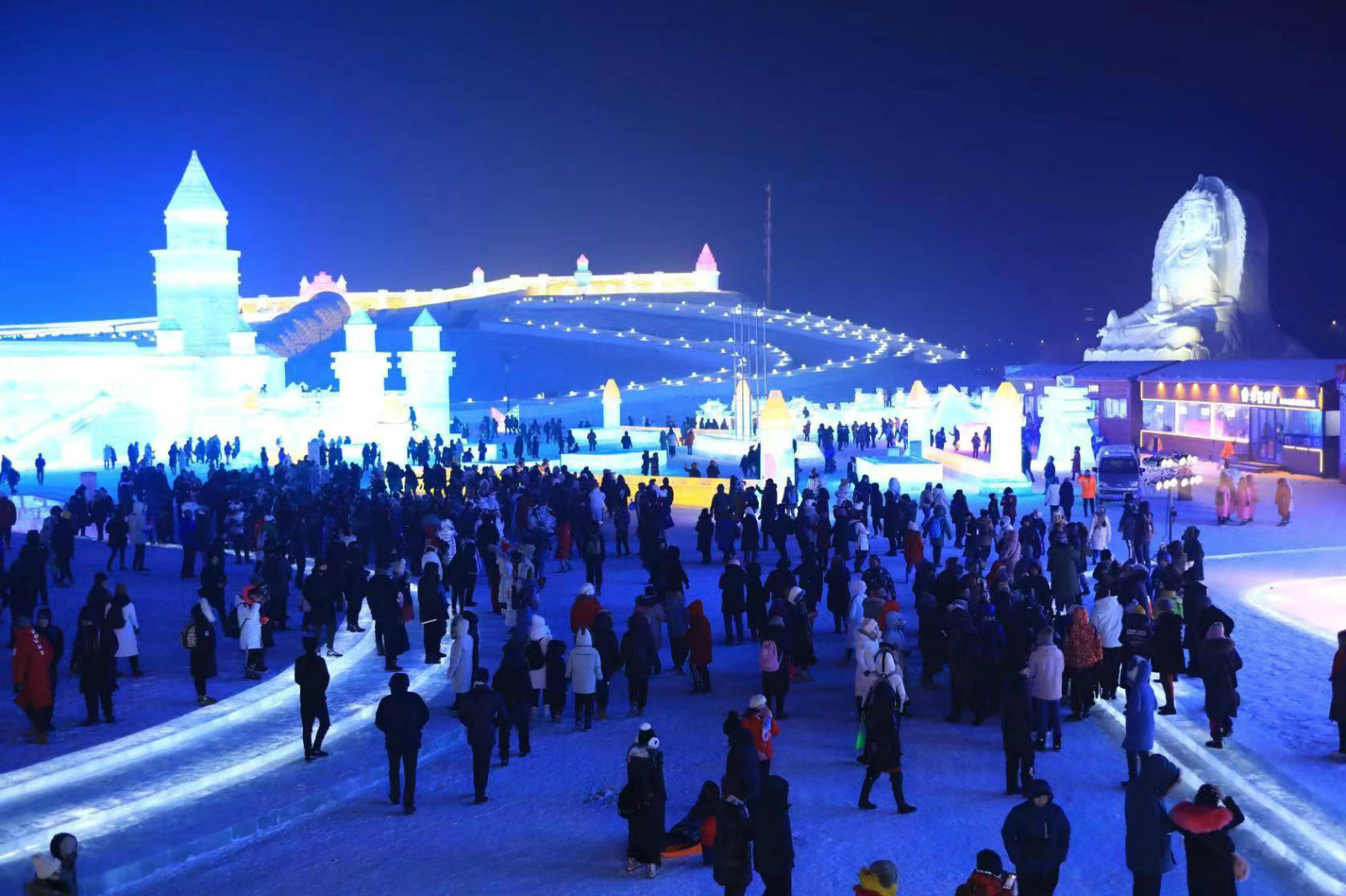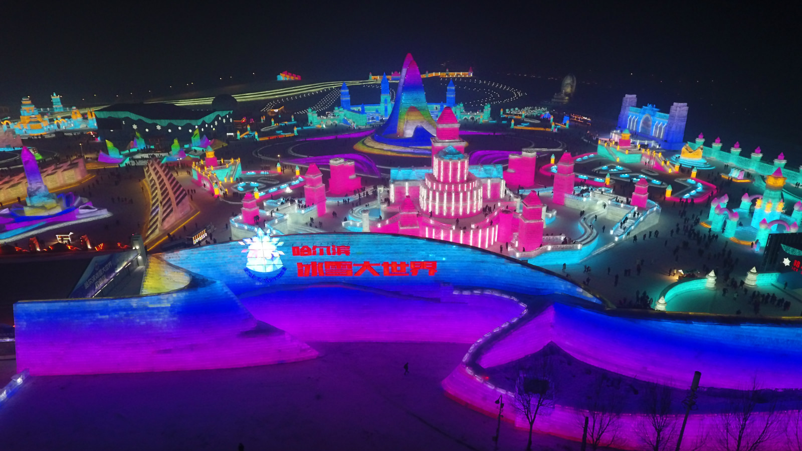 這座由冰雪築就的龐大樂園,總佔地面積60萬平方米,用22萬立方米的冰和雪,打造出世界最大的冰雪主題樂園。21個冰雪景觀群,20餘處互動娛樂項目,9項活動2項賽事,3400場免費演出,構成了一場冰雪盛宴。