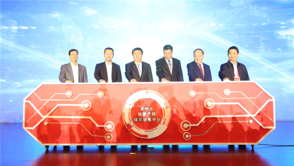 濱州市委書記佘春明(左三),濱州市委副書記、市長宇向東(左五),與嘉賓共同啟動濱州市產融綜合服務平台