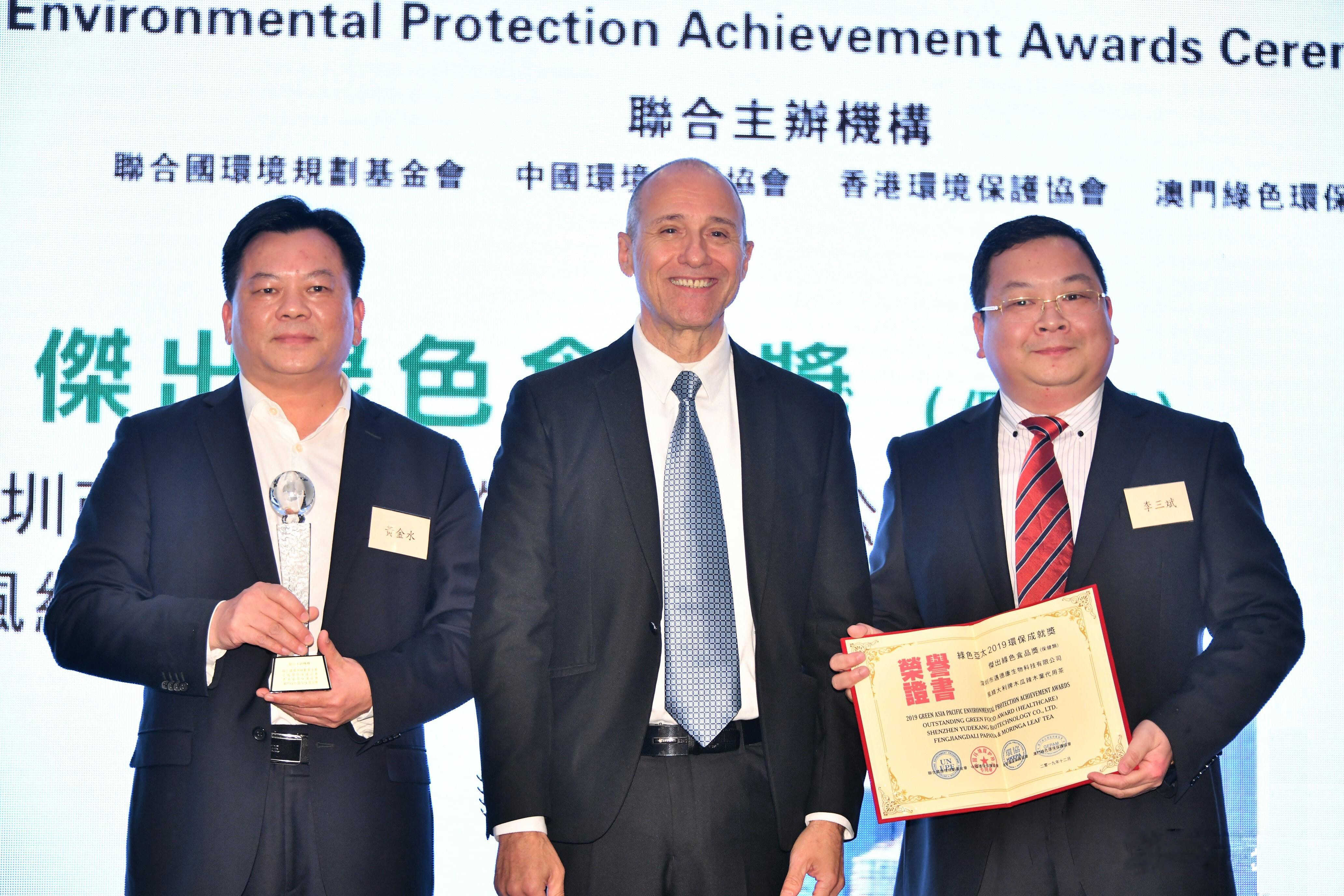 2019年12月5日,香港舉辦的「綠色亞太2019環保成就獎」頒獎典禮上,聯合國環境規劃基金會代表維克托科希(Mr.Victor Cauchi),向廣東霖善堂生物科技有限公司董事長黃金水、深圳市遇德康生物科技有限公司總經理李三斌、頒發了獎盃和證書