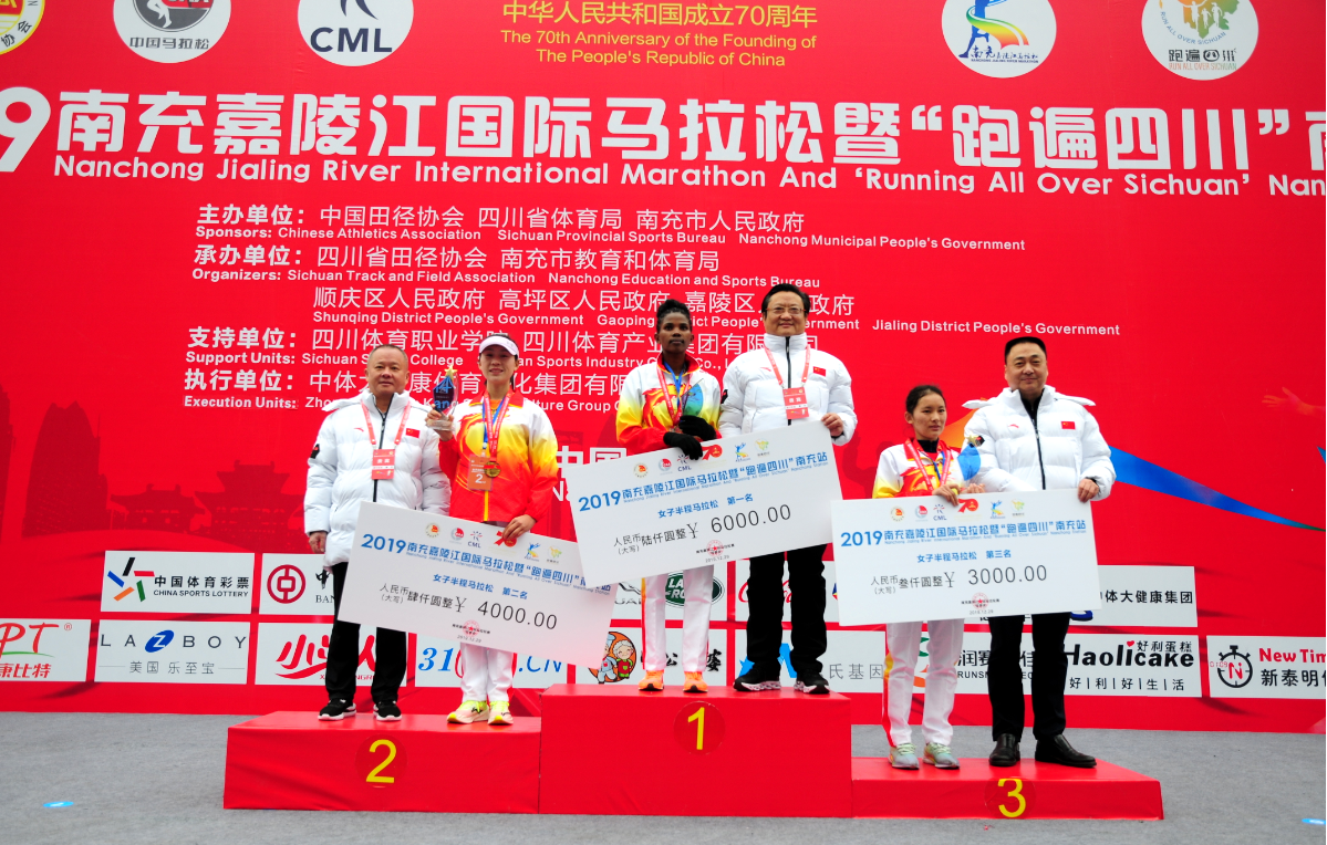 【香港商報網訊】12月29日,由中國田徑協會、四川省體育局、南充市人民政府主辦的2019四川南充國際馬拉松在嘉陵江畔激情開跑。賽事吸引了來自23個國家的15000名選手,四川樂山選手碾者阿提和山東泰安選手李淑雲分獲「全馬」男女冠軍,來自埃塞俄比亞的Berhanu和Meskerm分獲「半馬」男女冠軍。