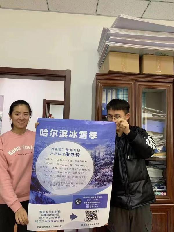 記者在採訪中了解到,今冬全市文旅執法人員採取了審查導遊資質、大巴車手續,詢問相關從業人員,與遊客進行談話詢問等多種形式,總體檢查運營資質健全,從業人員規範,未發現有「低價游」等違法違規情況。還開通冬季旅遊市場服務平台,設立微信公眾號,實現旅遊行業群眾遊客投訴統一平台受理,多部門密切配合聯動,快速解決涉旅投訴問題。建立完善證據固定機制。對發現違法違規問題的證據進行及時保存,並及時移交相關涉旅監管部門。重點做好哈爾濱文旅服務的宣傳,深入推介「哈亞雪」旅遊專線產品誠信指導價宣傳。在主要景區、景點、旅行社、賓館以海報、宣傳板等形式,開展「我是文旅駐群員,有事請您@我,這個冬天旅遊季,哈爾濱用誠信歡迎您」主題宣傳,採用新舊多種媒體手段進行宣傳引導,打造冬季旅遊有誠有信的哈爾濱新品牌。