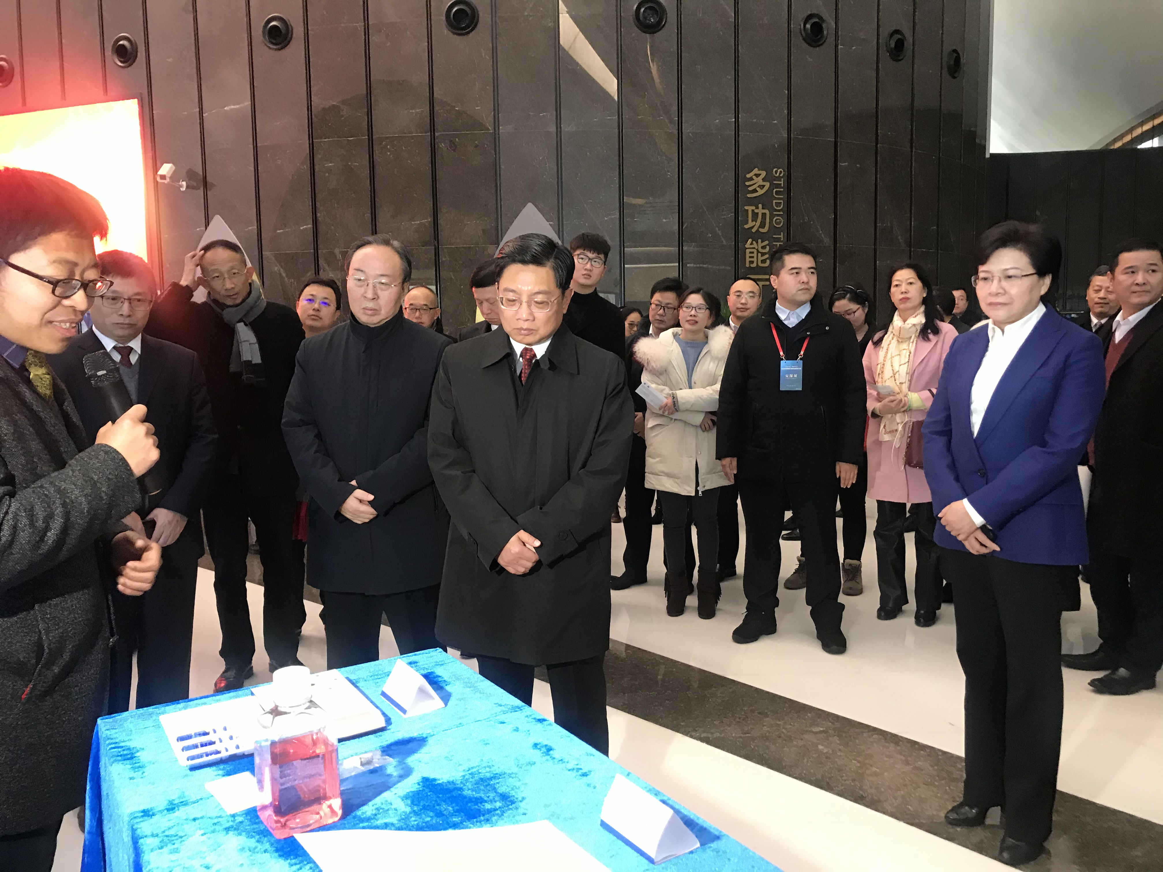 江蘇省委常委、南京市委書記張敬華(前排左二)、南京市委副書記、代市長韓立明(前排右一)等南京主要領導聽取南京市創新名城建設情況