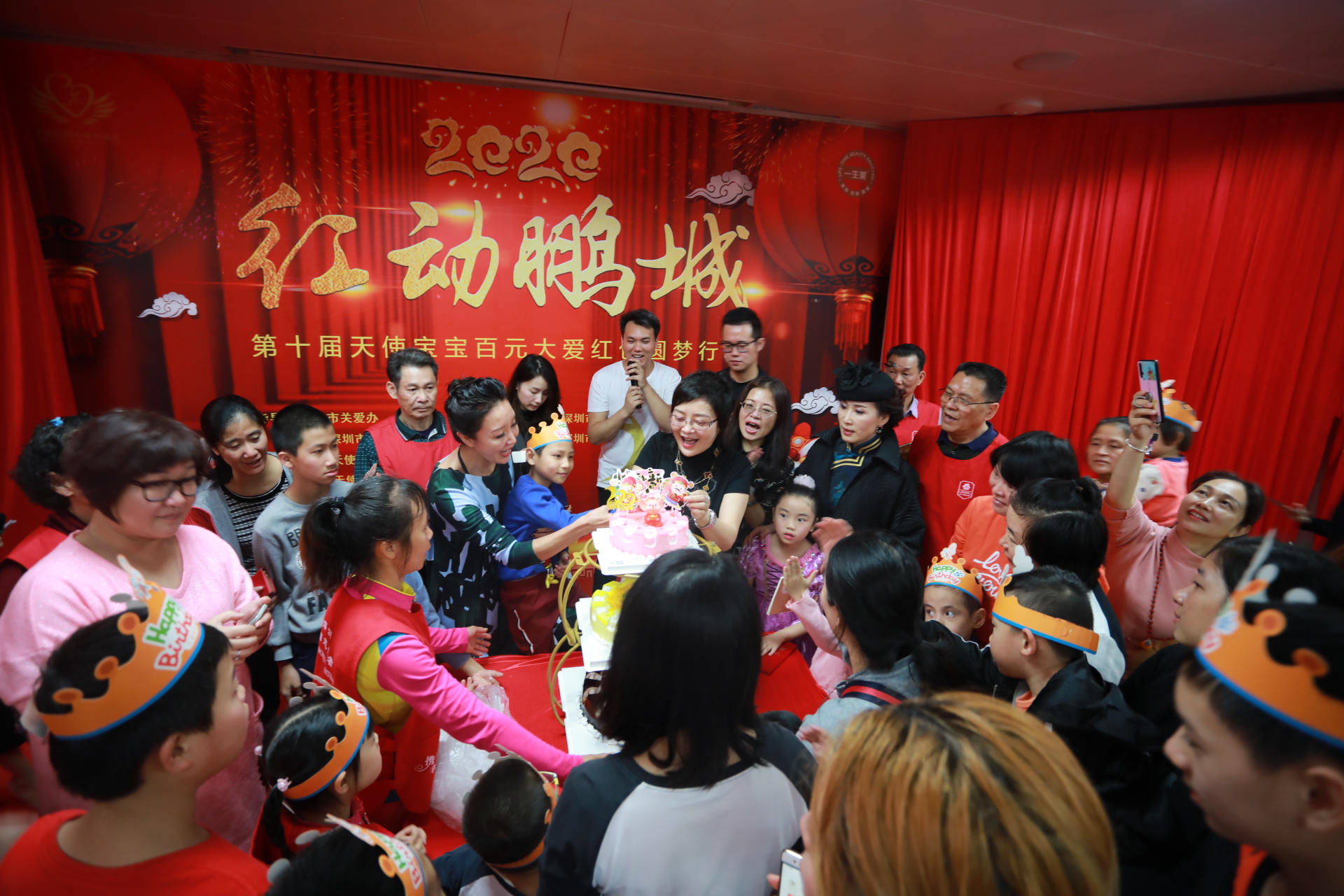 志願者朋友們把生日蛋糕抬了出來,在燭光的輝映下,大家一起唱起生日歌,為天使寶寶們送上最真摯最有愛的祝福。隨後,2020紅動鵬城第十屆天使寶寶百元大愛紅包圓夢行動開啟了,到場的領導和嘉賓為天使家庭發送禮物和愛心紅包,送上溫暖的新年祝福。