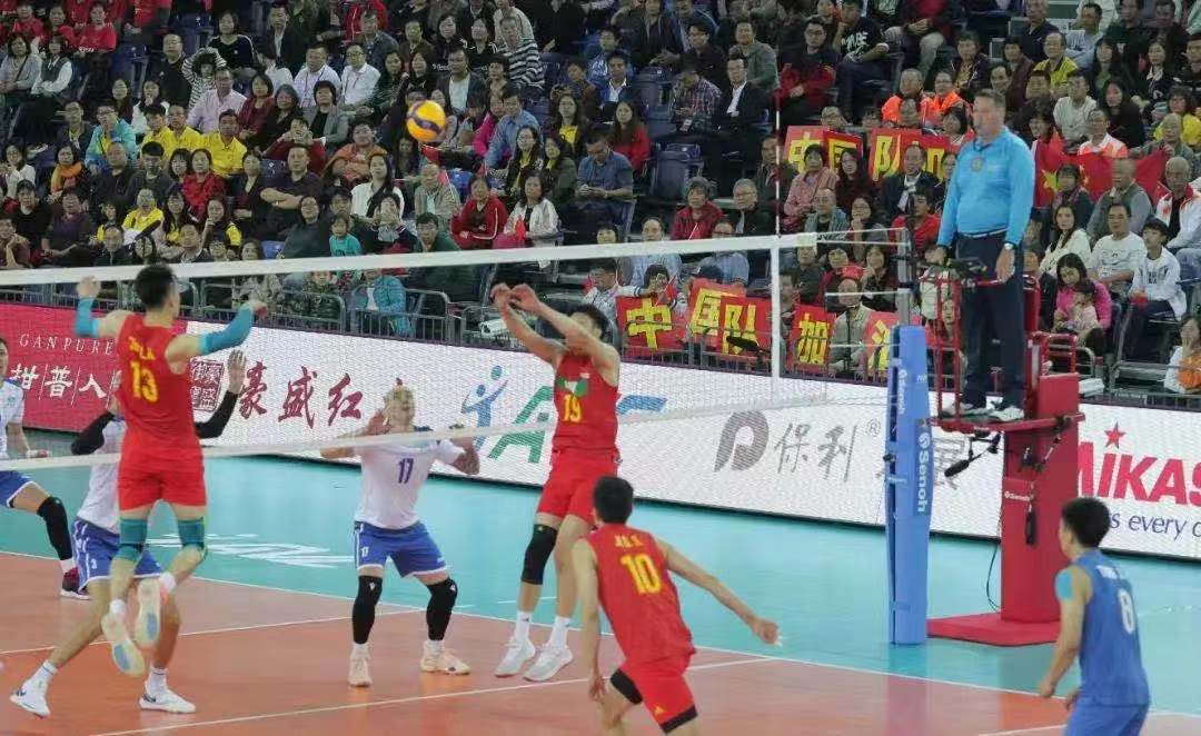 位於A組的中國男排在當晚20:00登場,迎戰本次賽事的第一個對手哈薩克斯坦男排,第一局,中國男排率先進入狀態,多次發起網前強攻,以14:10取得領先。隨後江川連續三次發球直接得分,幫助中國男排擴大領先優勢, 25:19,中國隊拿下第一局