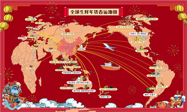 根據盒馬今天發佈的《生鮮年貨春運地圖》,目前已有來自全球40多個國家的上百種優質生鮮年貨,順利搶到了中國春運的車票、機票和船票,馬不停蹄地將當地最好的農產品運往中國。