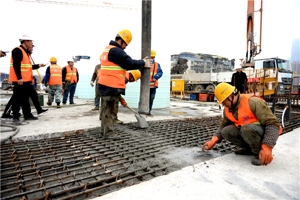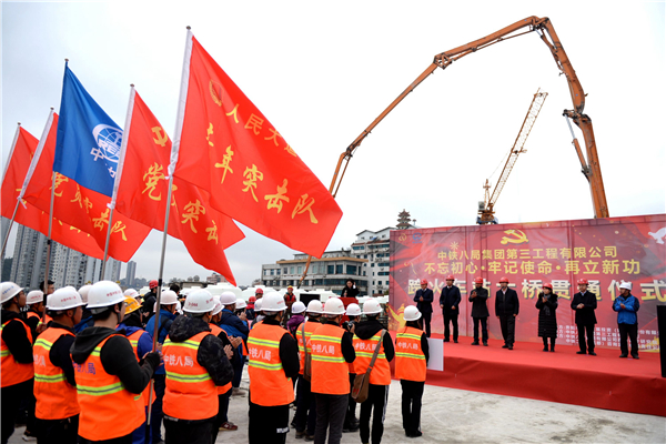 施工單位正在澆灌大橋合龍