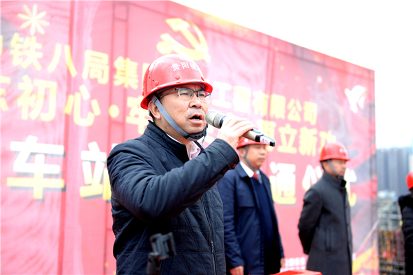 說起中跨的建設過程,項目書記馮能回憶道,「儘管直線距離只有140米,但這段距離包含了太多的安全因素,對於項目部來說儼然就是『咫尺天涯』」。據了解,該橋上跨的貴陽火車站是黔桂鐵路、滬昆鐵路、川黔鐵路以及貴開城際鐵路交匯的重要交通樞紐,每天接發列車數以百計,任何一點小的失誤都有可能造成嚴重的後果,為確保大橋順利相連且不影響列車的正常運行,項目部在巨大的施工壓力下,利用有效的「天窗點」時間,採用鋼管立柱和特殊鋼桁梁組合結構形式搭設了面積為3698平方米西南地區跨鐵路最大防護棚架。同時,24小時安排專人對防護棚架進行反覆安全巡查,確保在這頂「安全帽」下列車安穩運營,「安全帽」上樑體節段施工火熱進行。