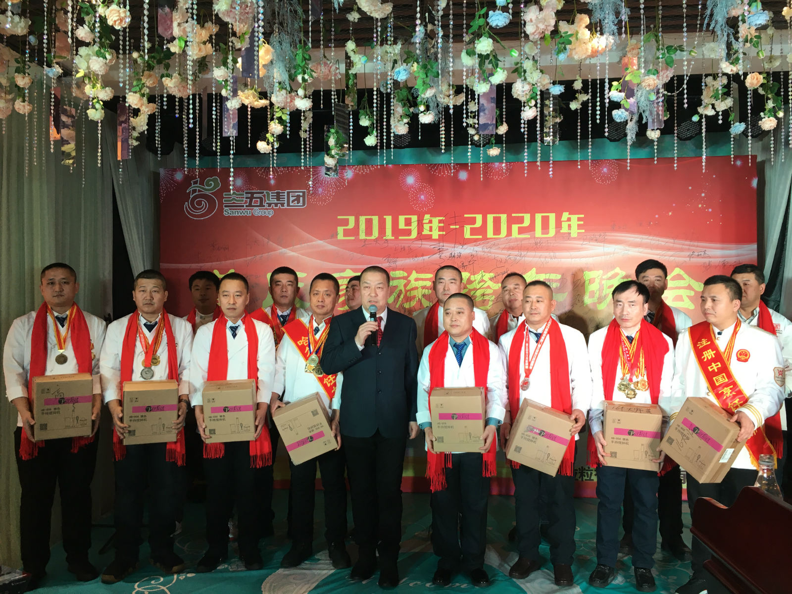 年會期間,姜立濱為其弟子頒發獎品。姜立濱表示,在新的一年裡,將繼續努力帶領弟子們發揚勞模工匠精神,勤勤懇懇,勇於創新,做好本職工作,為黑龍江餐飲行業的發展貢獻力量。