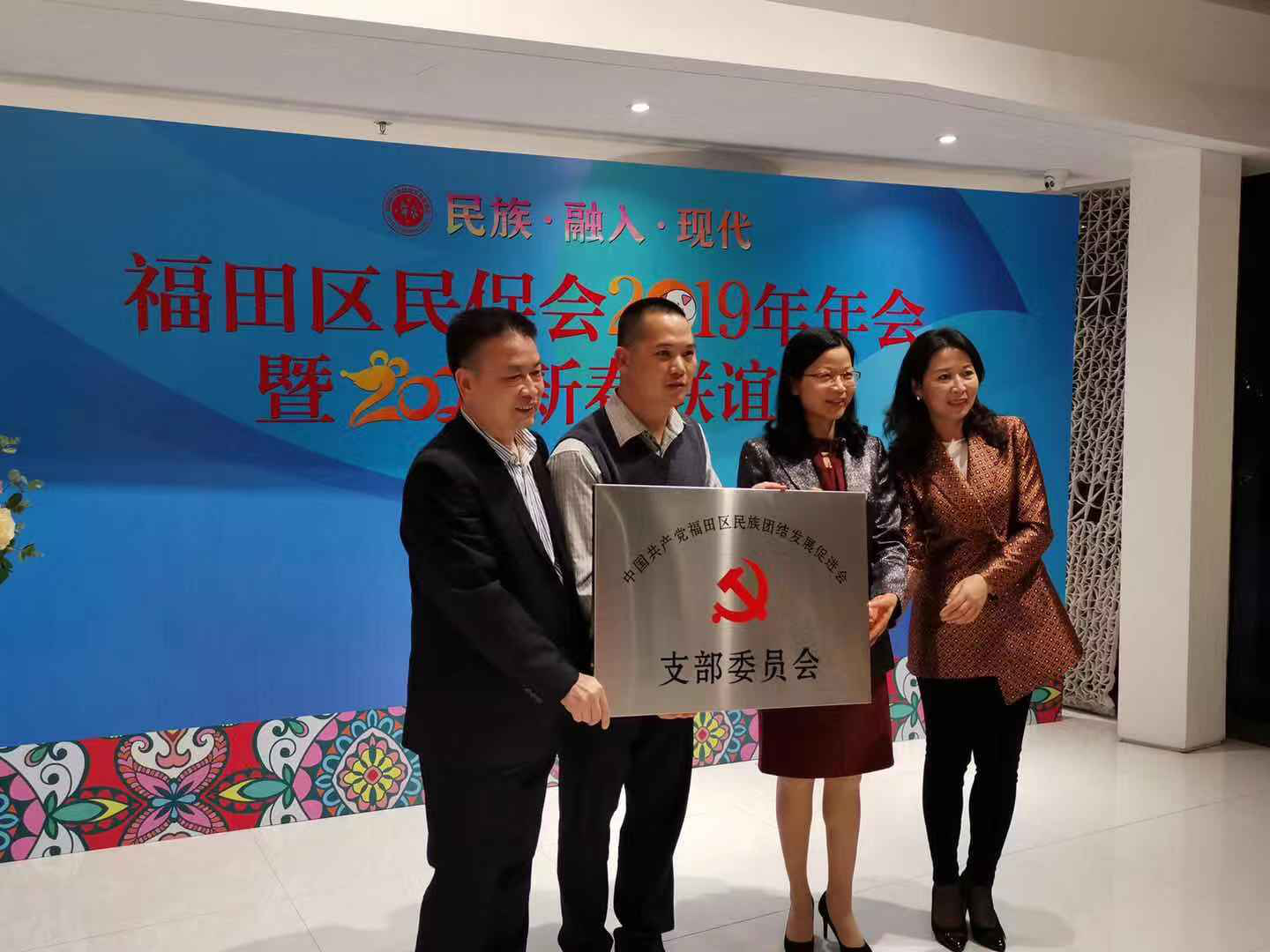 大會宣讀了《關於成立深圳市福田區民族團結發展促進會黨支部的批復》,並由福田區委常委劉俊琳為黨支部書記蘭林授牌。同時還表彰了在2019年度民族團結先進會員,分別是:麻根生、蘇偉、蘭林、亞生·艾麥提、陳湘傑。