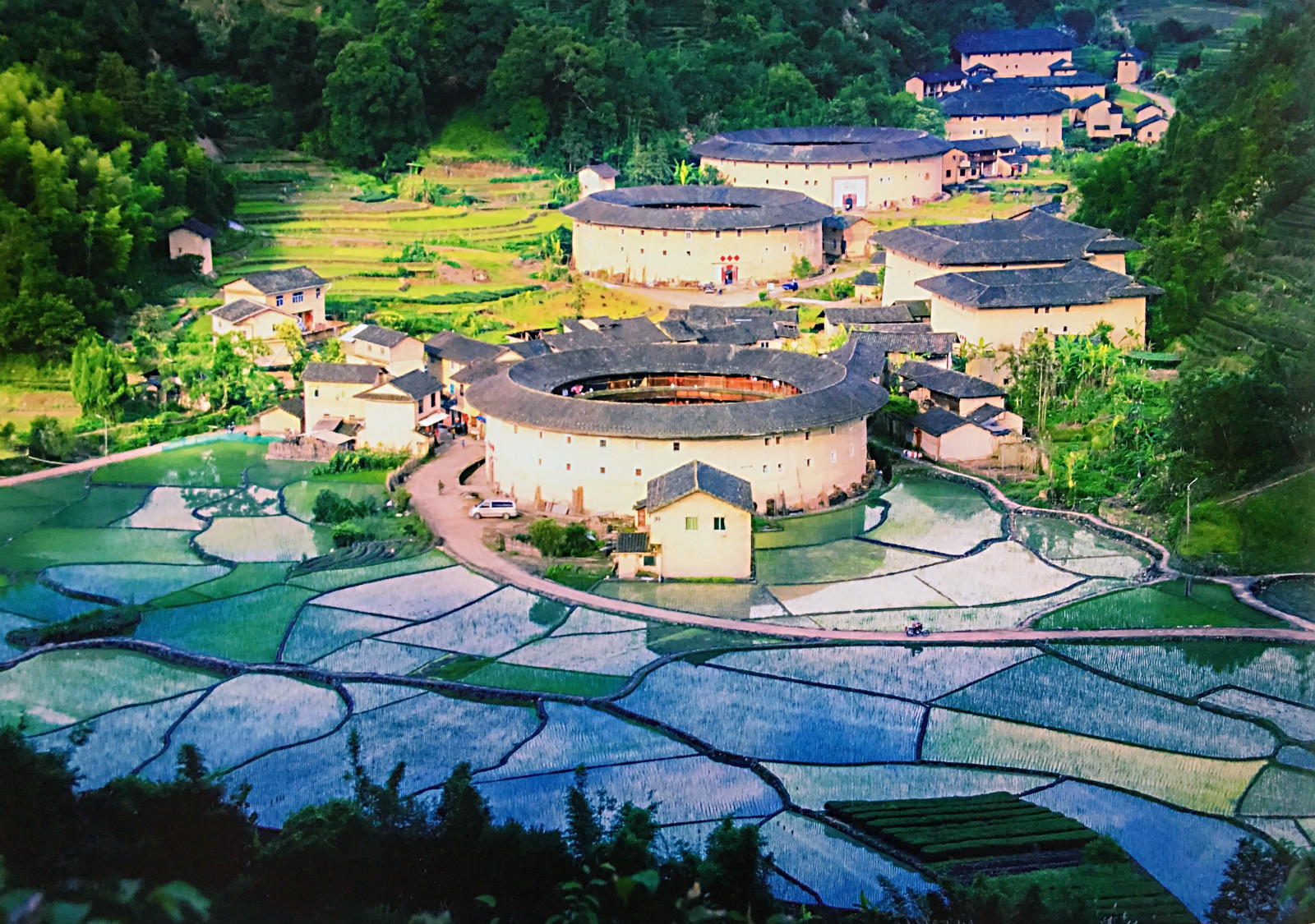 南靖是世界文化遺產——福建土樓主要遺產地,境內現存各類土樓15000多座,彙集了福建土樓標誌性建築田螺坑土樓群和全世界最古老、最精美、最高、最大、最小、最奇的土樓。其中大造型方圓土樓1300多座,堪稱「土樓王國」。南靖土樓」是世界上獨一無二、神話般的山區大型夯土民居建築,是創造性的生土建築藝術傑作,是植根於東方血緣倫理關係和聚族而居民族傳統的見證。