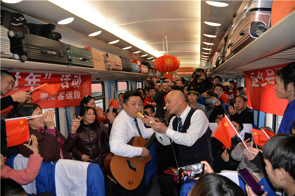 當天,貴州省總工會聯合成都局集團公司貴陽客運段,整合鐵路旅客列車運輸資源,從外出務工人員返鄉實際需求入手,以打造「貴州務工人員返鄉號」列車為載體,持續第四年在貴州列車上開展「接您回家—五送進車廂」暨「貴州務工人員返鄉號」活動,為外出務工人員開展「五送」專項服務。