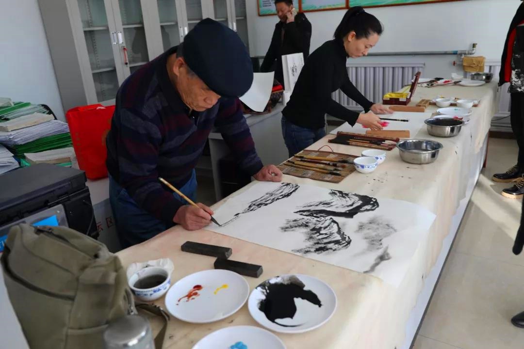 1月14日一大早,火紅的秧歌隊便點燃了寒冷的冬晨。密雲區河南寨鎮聖水頭村村委會人潮如織,密雲文聯「社會主義核心價值觀進萬家——百名書畫家新春走基層送福送春聯書畫活動」正在這裡舉行。