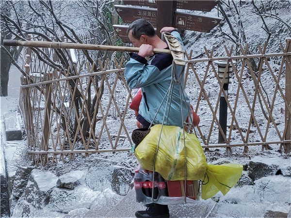 肩運員雪天保障遊客物資 葉永青攝