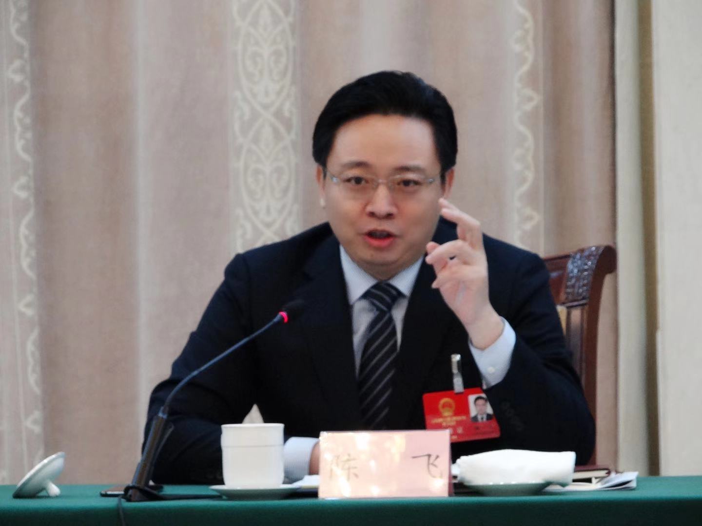 煙台市委副書記、市長陳飛在接受採訪