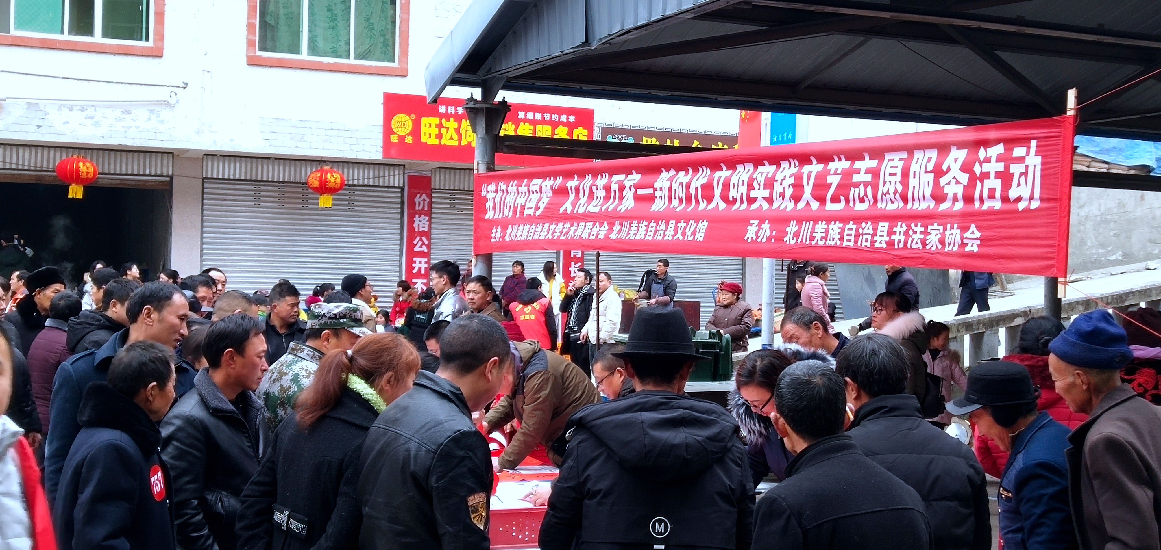 1月15日,三九天的清晨天未亮開,北川縣文聯組織的寫送春聯文藝志願服務小分隊就趕到海拔近兩千米的壩底鄉小嶺村。村委會門前早已擺好桌子,只等書法家們「開工」。喜笑顏開的村民們把桌子圍了個嚴嚴實實,有問價錢的,也有讚歎書法的。「這些春聯都是免費寫的,送給你們,祝父老鄉親新春快樂!」書法家們解釋到。寫好的一副副春聯整齊地擺放在地上,瞬間就被「搶」完。北川永昌中學老師陳勇是文藝志願服務小分隊成員,連續三天一共寫送春聯200多副,「我到家門口了,忙得連話都沒跟老母親多說兩句。老百姓需要就寫哦,這些春聯就是我對父老鄉親的祝福。」