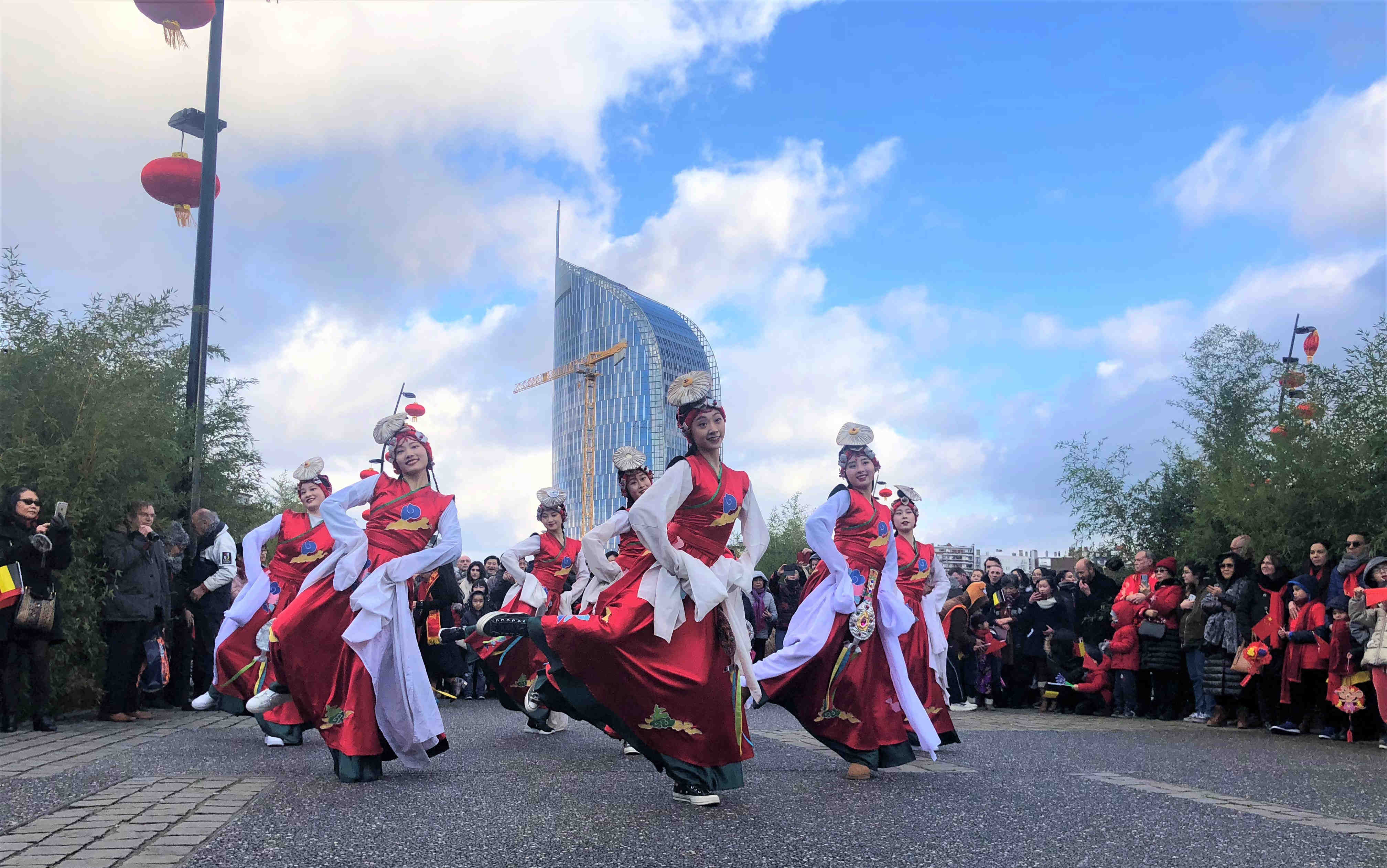 鼓聲喧天,獅舞龍躍。由19個方陣1000餘名中比兩國藝術家和民眾組成的巡遊隊伍浩浩蕩蕩從基爾曼斯火車站前廣場出發,行進中沿街表演舞龍舞獅、傳統舞蹈、秧歌腰鼓展示。
