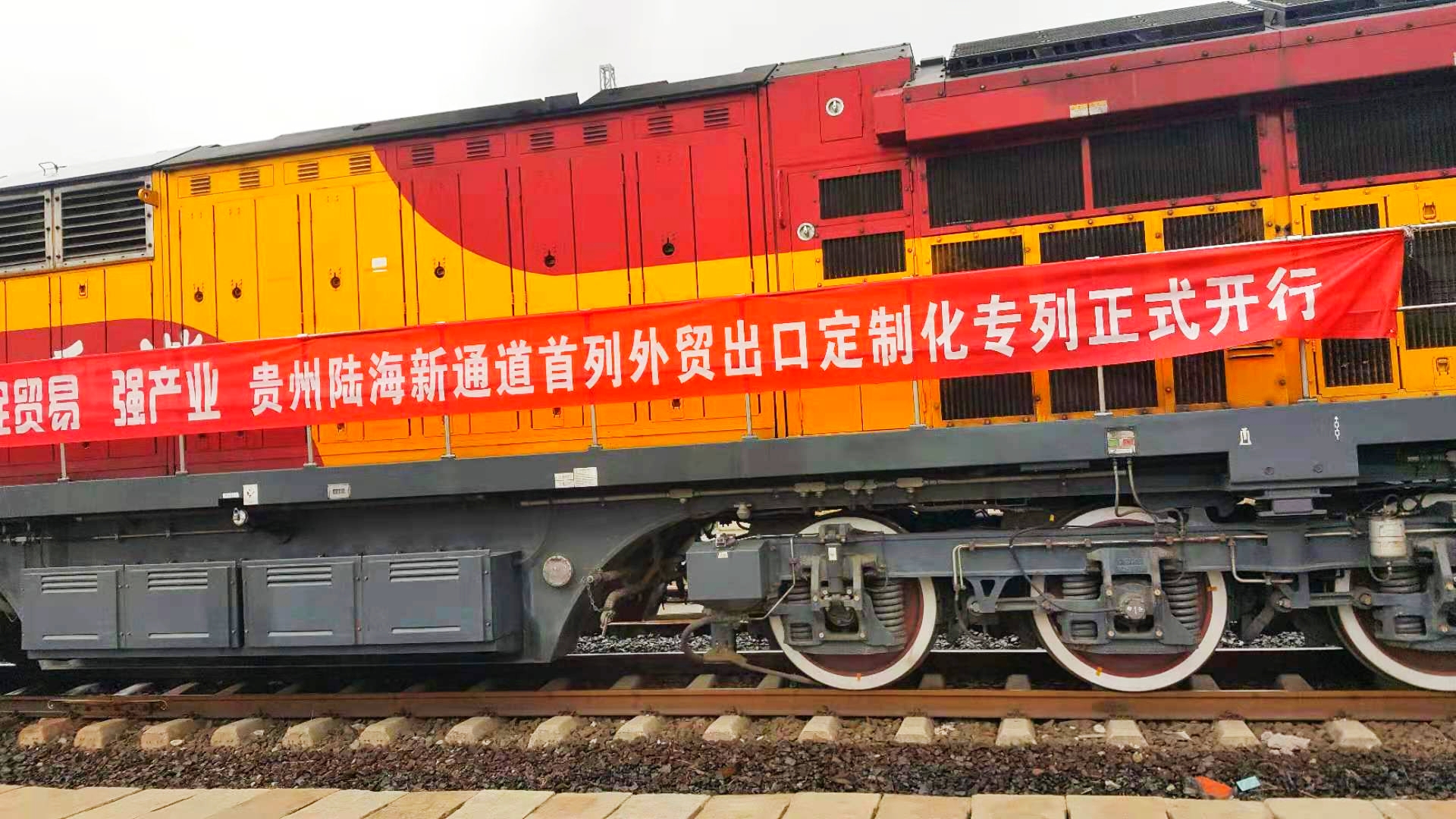【香港商報網訊】 1月20日,隨着一聲清脆的汽笛,一列滿載貴州本土產的橡膠製品的貨物班列從中國鐵路成都局集團有限公司貴陽南車站改貌物流中心緩緩駛出,一路南下駛向廣西欽州港,標誌着陸海新通道首列為單一客戶定製的全外貿原箱出口專列成功開行。