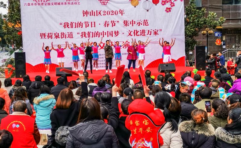 【香港商報網訊】日前,貴州省六盤水市鐘山區荷泉街道在轄區舉行了「我們的節日·春節」集中示範,暨「我們的中國夢·文化進萬家」群眾文化系列活動喜迎新春佳節。