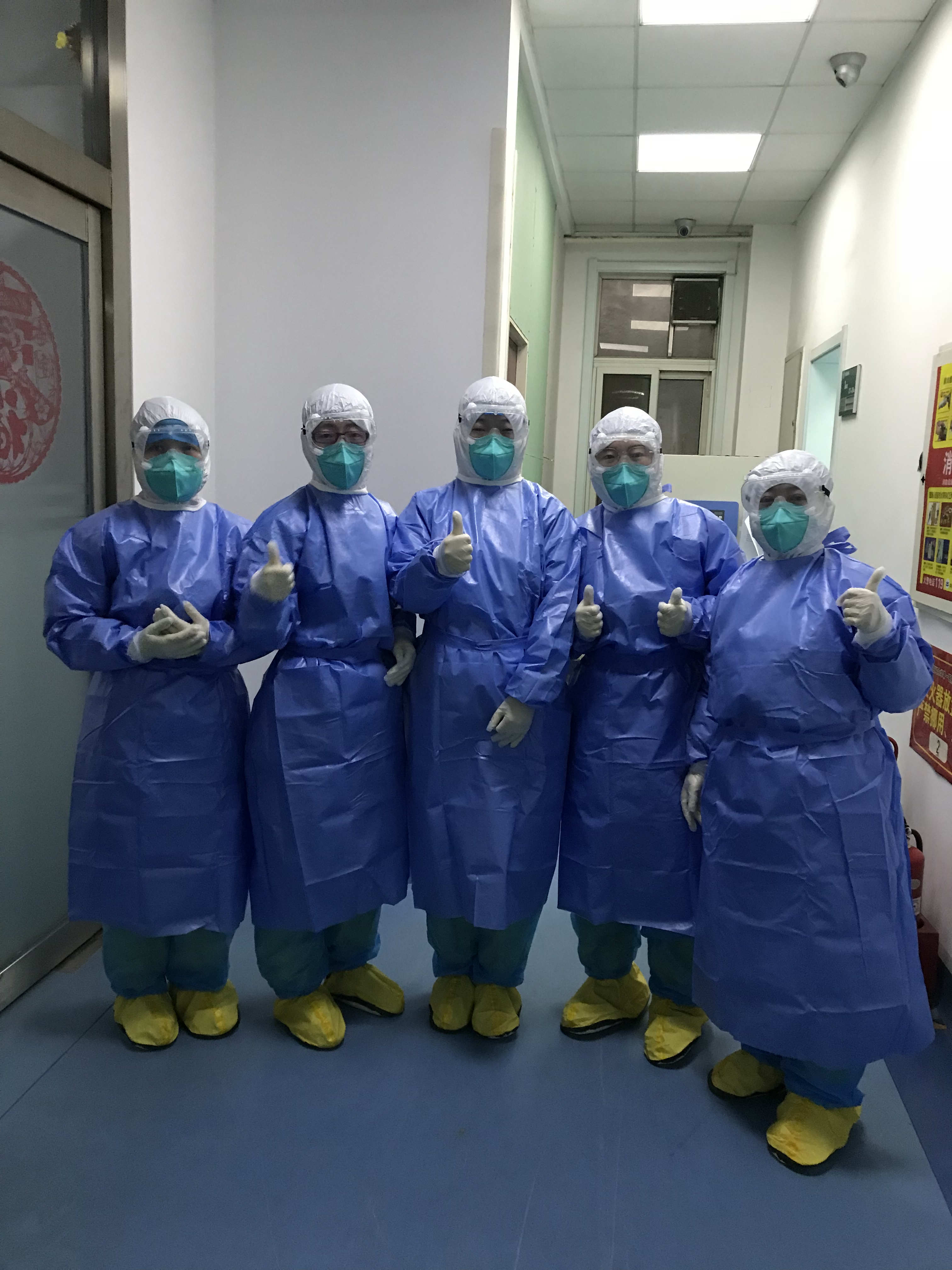 山醫大一院感染病科留觀病房是此次收治新型冠狀病毒疑似患者的專用病房,這裡的醫護人員是與患者最“親密”接觸的人群之一。因為需要長時間穿著隔離服,這群醫護人員們就相互在對方隔離服的背後畫上可愛的笑臉,寫上加油的字句,相互鼓勁打氣,也給前來就診的患者帶去了信心與勇氣,也為病房的緊張氣氛帶來一絲暖意。
