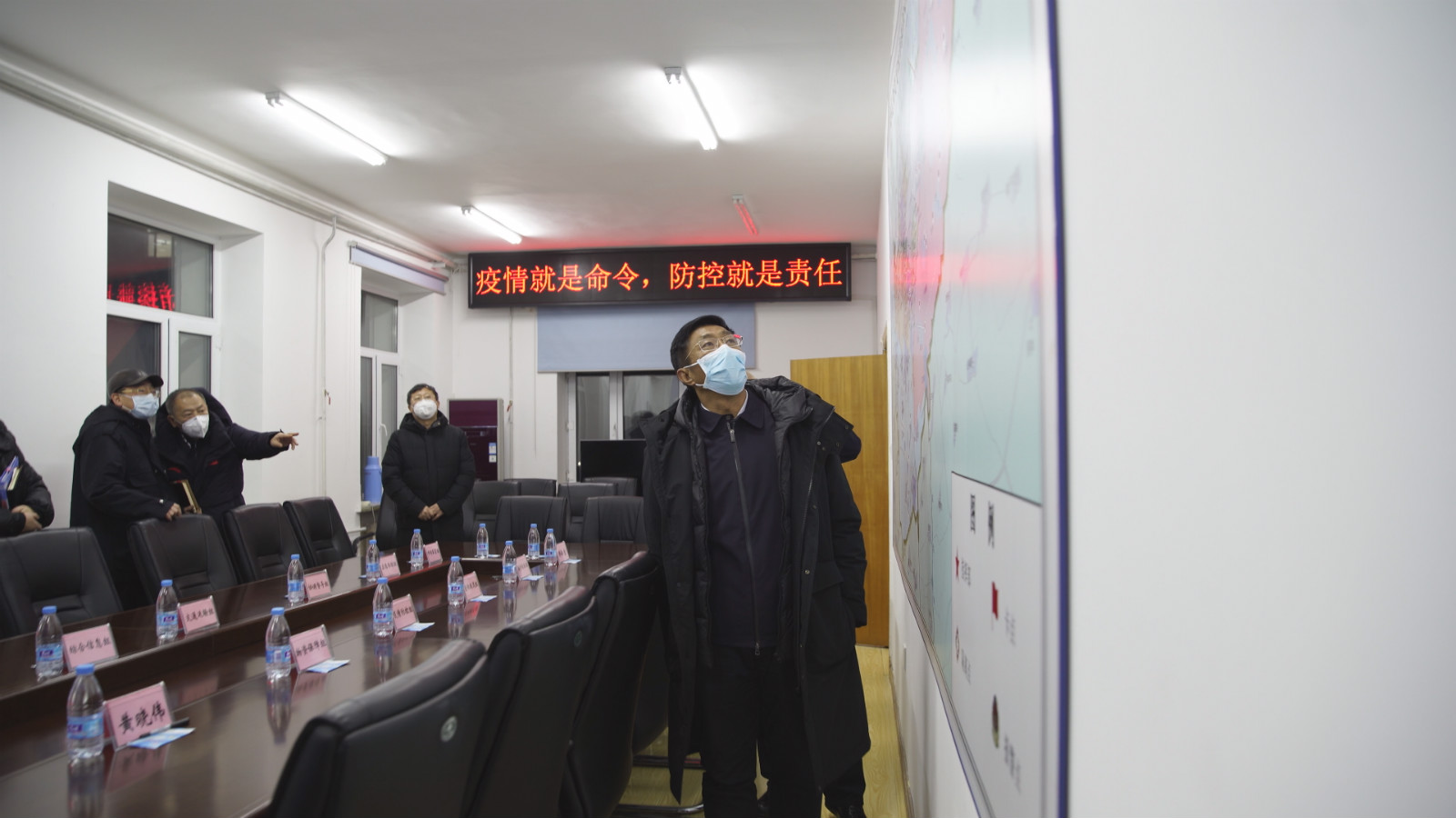 據平房區疫情防控指揮部工作人員介紹,之所以這樣挂圖作戰,是在防控工作開展的頭兩天,他們發現,在卡點設置上存在信息不暢通的問題,導致有時輪班值守的工作人員找不到具體位置,出現重複跑路現象。於是,指揮部連夜設計地圖、連夜製作打印、隨後對接拼裝,經過近10個小時緊張工作,1月28號中午,這張大尺寸地圖掛上了指揮部牆上。