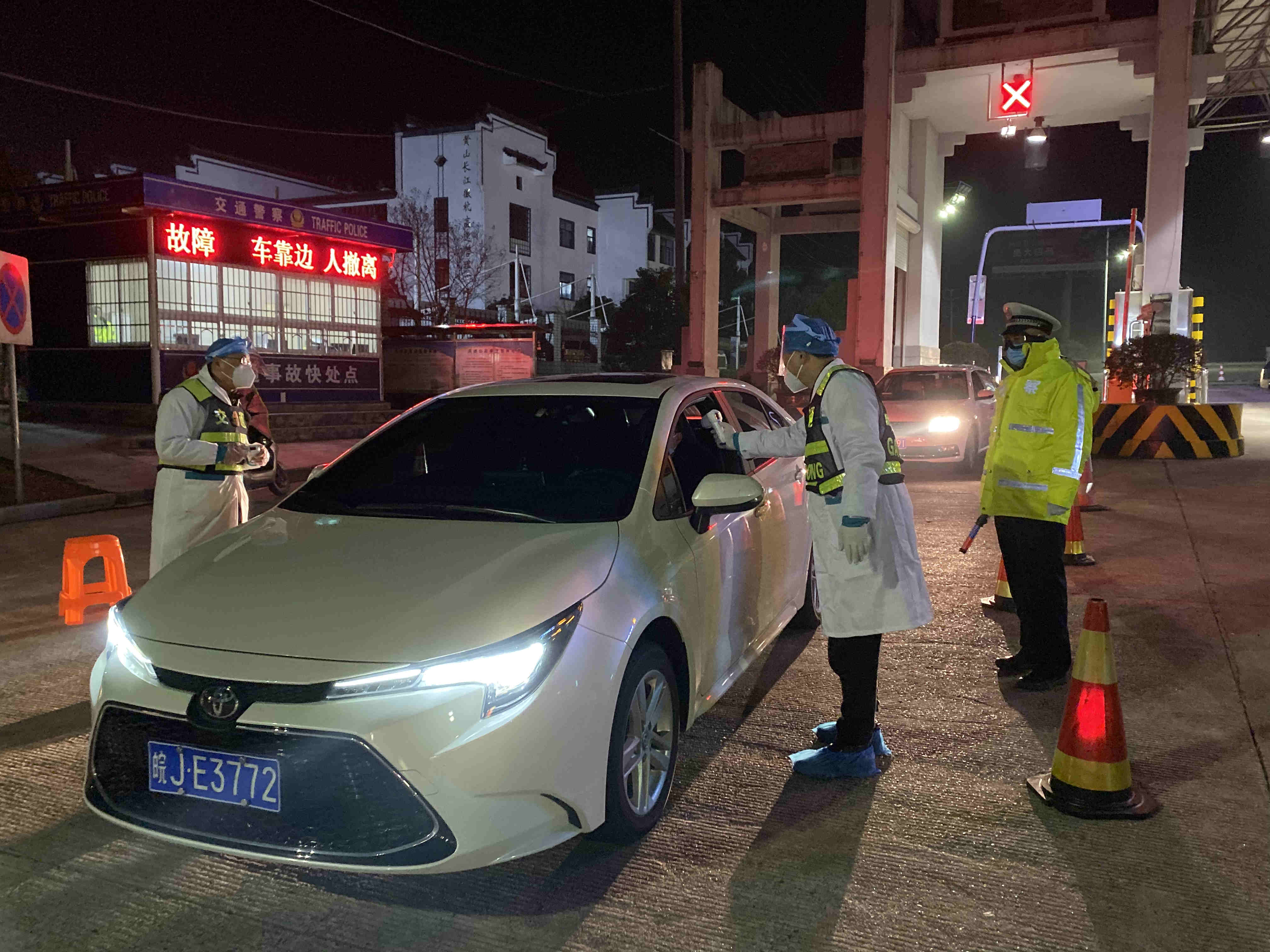 “你好,請配合測個體溫。儘量不要出門,出門記得戴口罩。”1月30日晚上8點多鐘,筆者在黃山市屯溪2號高速路口看到,醫務人員和交警堅守在崗位上,手持體溫測量儀,逐一對過往司機和乘客檢測體溫,宣傳疫情防控知識。