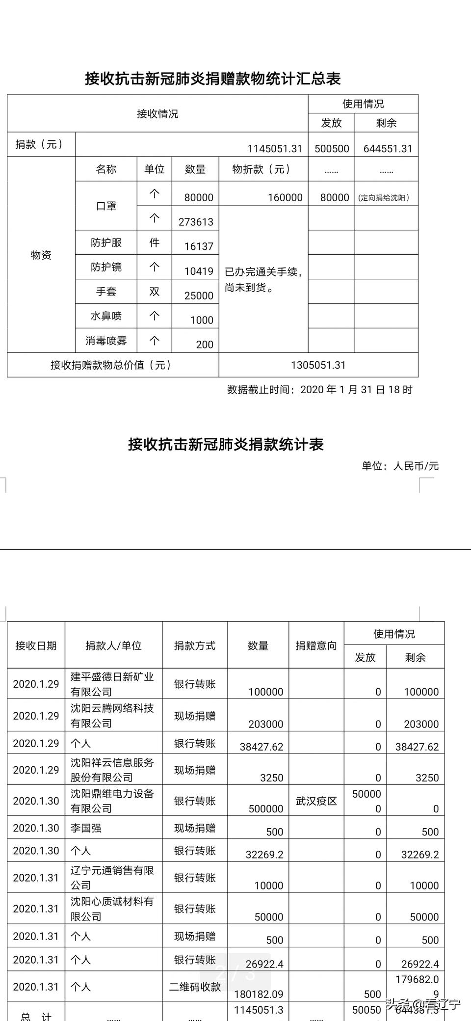 【香港商報網訊】記者 王玉春 報導:記者從遼寧省慈善總會獲悉,截止1月31日18時,省慈善總會累計捐贈款物總價值1305051.31元,其中接收捐款114.5萬元,另有口罩、防護服、防護鏡、手套等物資。