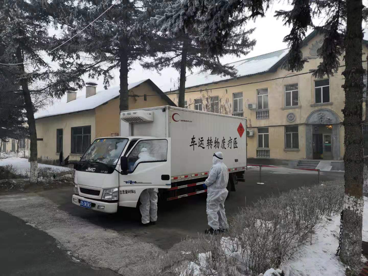 記者首先來到黑龍江省傳染病防治院,這裡是黑龍江省新型冠狀病毒感染的肺炎省級定點收治醫院,所以醫療廢物就要照平時更加及時的轉運。此時,醫療廢物轉運車正停在這裡,對醫療廢物進行清運。