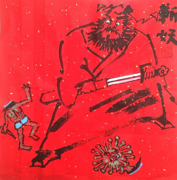 “黃鶴中國鶴,武漢中國人。同心抗疫病,當存仁愛心”“本是過年走親房,無奈居家不出堂。看到國士白褂使,不覺清淚漫數行”“天有不幸事,國有瘟魔年。全民齊努力,莫做失望言”……這是全國知名美術評論家、中國文藝評論家協會會員、定西市第一中學美術老師陳勝臨(三香齋主)在疫情防控期間創作的《鎮妖制毒圖》配詩,其以“鍾馗”形象為原型,以“妖”喻“疫”,創作出疫情防控系列漫畫,並通過微信、美篇等平台廣為傳播。