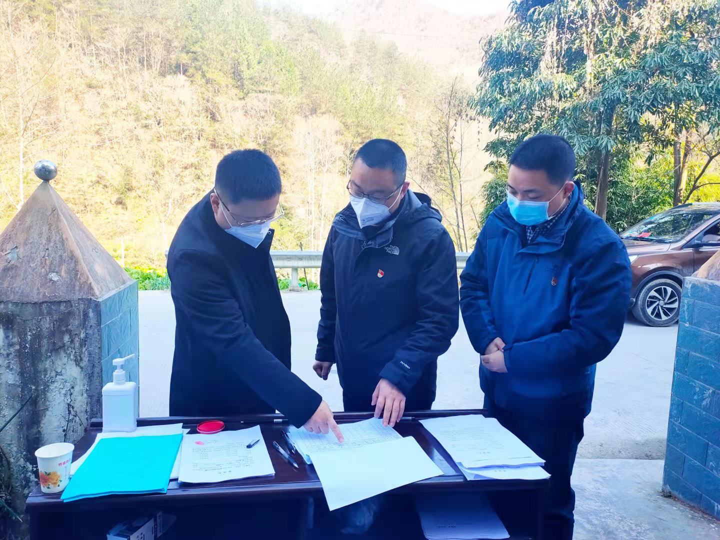 平武縣委常委、組織部部長陳旭(左一)在防控監測點檢查工作