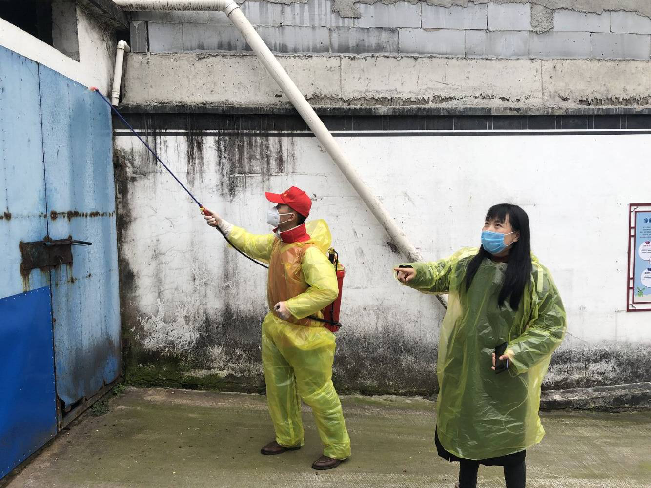 方沁在佈置社區防疫消殺工作 謝瑤攝