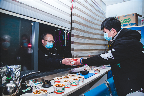 【香港商報網訊】2月2日晚,貴州省萬山區銅仁南站高速路口一線防疫執勤點,簡易工作棚外淅瀝瀝下着寒冷冬雨,棚內十幾位執勤民警正吃着熱氣騰騰的餃子。