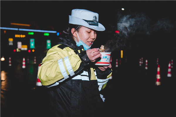 民警端餃子時,陳靜看見他們雙手被凍紅、臉上掛着疲憊,不禁感慨:「這些年輕人真是太辛苦了!」