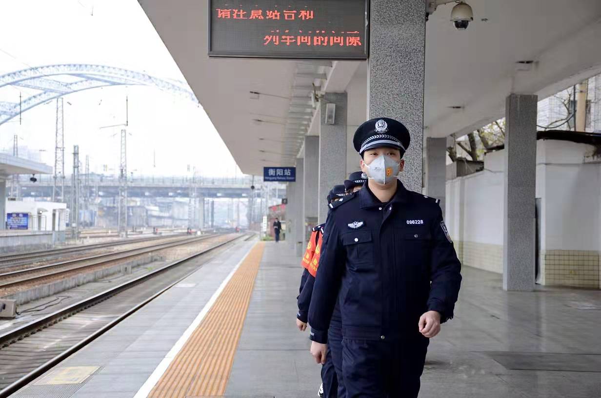 晚上,李智穎跟隨隊長一同來到了衡陽站周邊的商鋪及賓館,挨個進行人員清查及消防檢查,並勸導工作人員特殊時期,能不開門的儘量不要開門,如開門營業一定要佩戴好口罩,及時做好人員登記和消毒工作。每進一家店,他便強調一次,如此反復不厭其煩,等完成了周邊所有店鋪的清查,他的聲音已經嘶啞了。