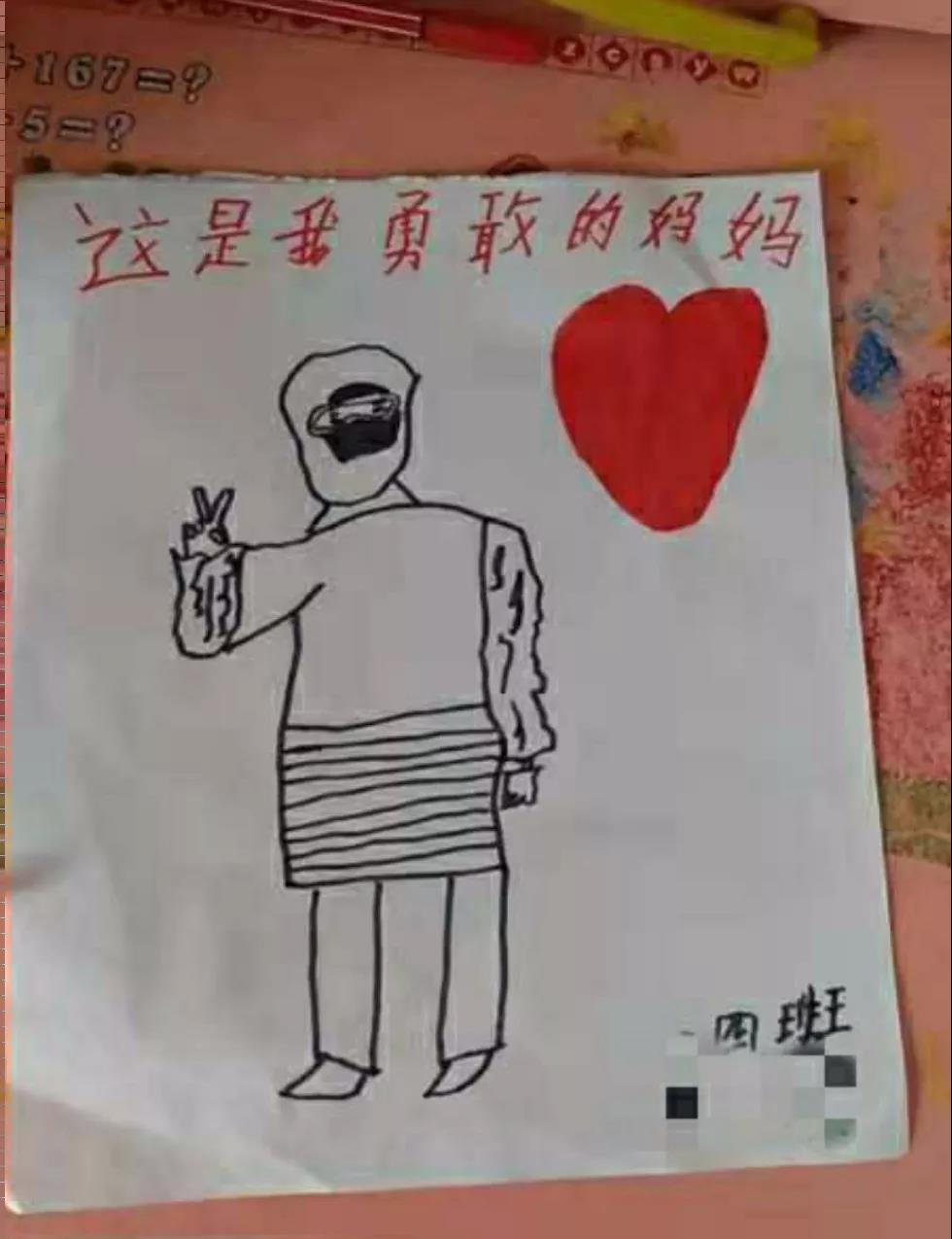 其實,這4名護理人員已經整整7天沒有見到自己的家人了。其中李丹丹護士的一雙兒女,最大的才5歲,最小的僅3歲。侯華楠護士6歲的女兒,難耐對媽媽的思念,特意畫了一張畫,看着孩子用稚嫩的筆法,畫出的愛心、防護口罩,聽着孩子們在視頻裏面想媽媽的話,隔離病區的護理人員們依然義無反顧地說:「隔離病區就是陣地,病人只要在,只要我們身體還能夠堅守,那我們就不下戰場,決心堅守到最後一刻。」