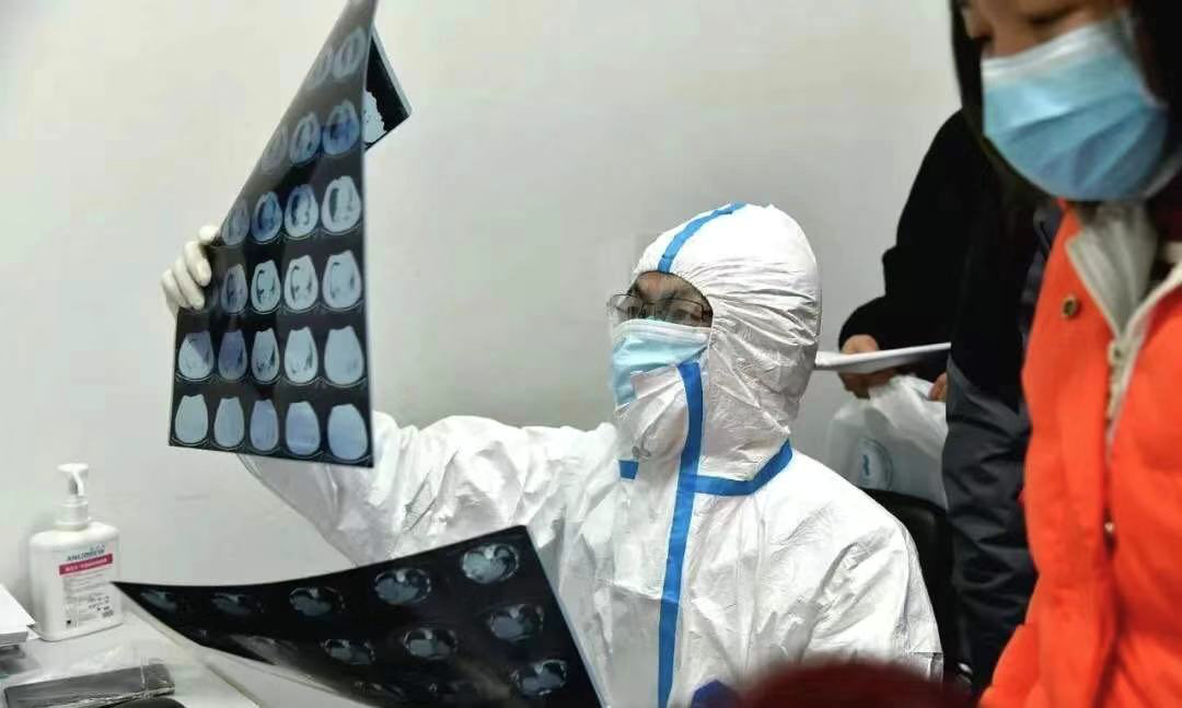 武漢市金銀潭醫院醫生正在看患者的胸部CT