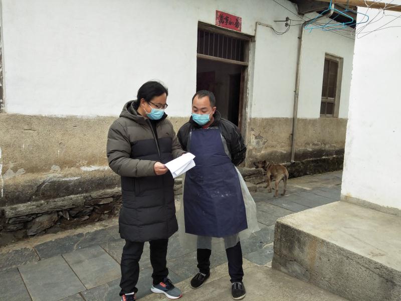 為充分發揮選派幫扶幹部的先鋒模範作用,發揮駐村扶貧工作隊的示範帶動作用,該縣縣委組織部下發緊急通知,要求駐村扶貧工作隊把投身防控疫情第一線作為踐行初心使命、體現責任擔當的試金石和磨刀石,積極參與當地疫情防控工作。?駐村扶貧工作隊隊員們第一時間到崗到位,積極主動加入防疫隊伍中,走村入戶宣傳疫情防控知識。