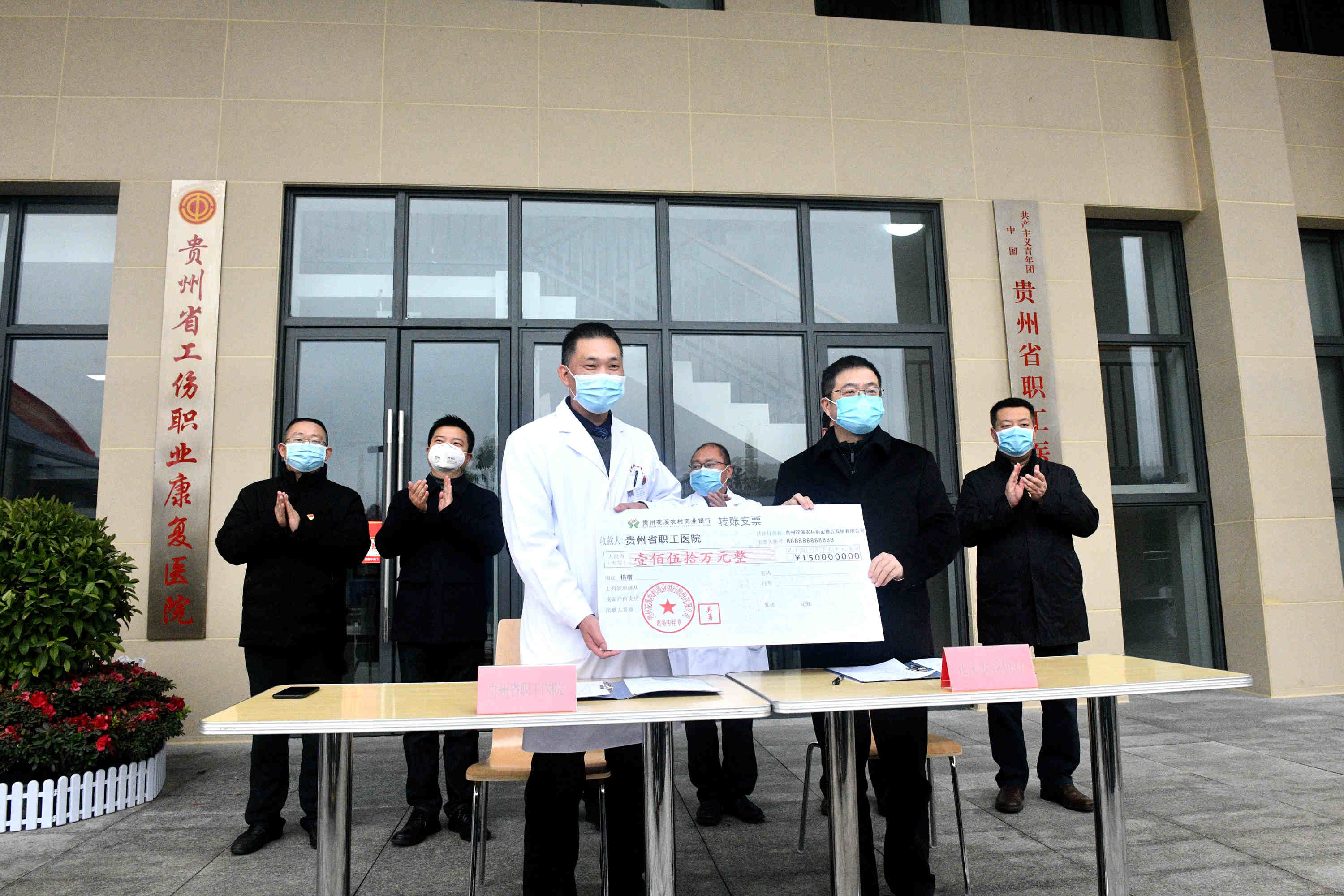 【香港商報網訊】2月5日下午,簡短而莊重的捐贈儀式在貴州省職工醫院門診大樓前舉行,貴州花溪農商銀行及由其發起成立的貴安新區發展村鎮銀行分別向該醫院捐款150萬元和50萬元共200萬元,用於新型冠狀病毒肺炎的救治和疫情防控工作。這是該院確定為定點救治醫院後收到的首筆捐贈。