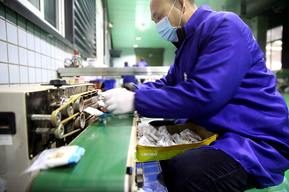 「我們出來工作,其實每個家人都很擔心,但是也很支持。我的媽媽專門給我買了酒精放車上,讓我回家前一定要消毒,然後每天晚上還要給我打一個視頻電話,問我情況,確定我一切正常才能放心睡覺。所以我們公司在做好生產保障的同時,也注意做好防疫措施。如食堂實行配餐制、每天提供中藥飲、生產區域每天消毒等,讓家人安心的同時,自己也更好地防控疫情,投入生產。」李忠容表示。