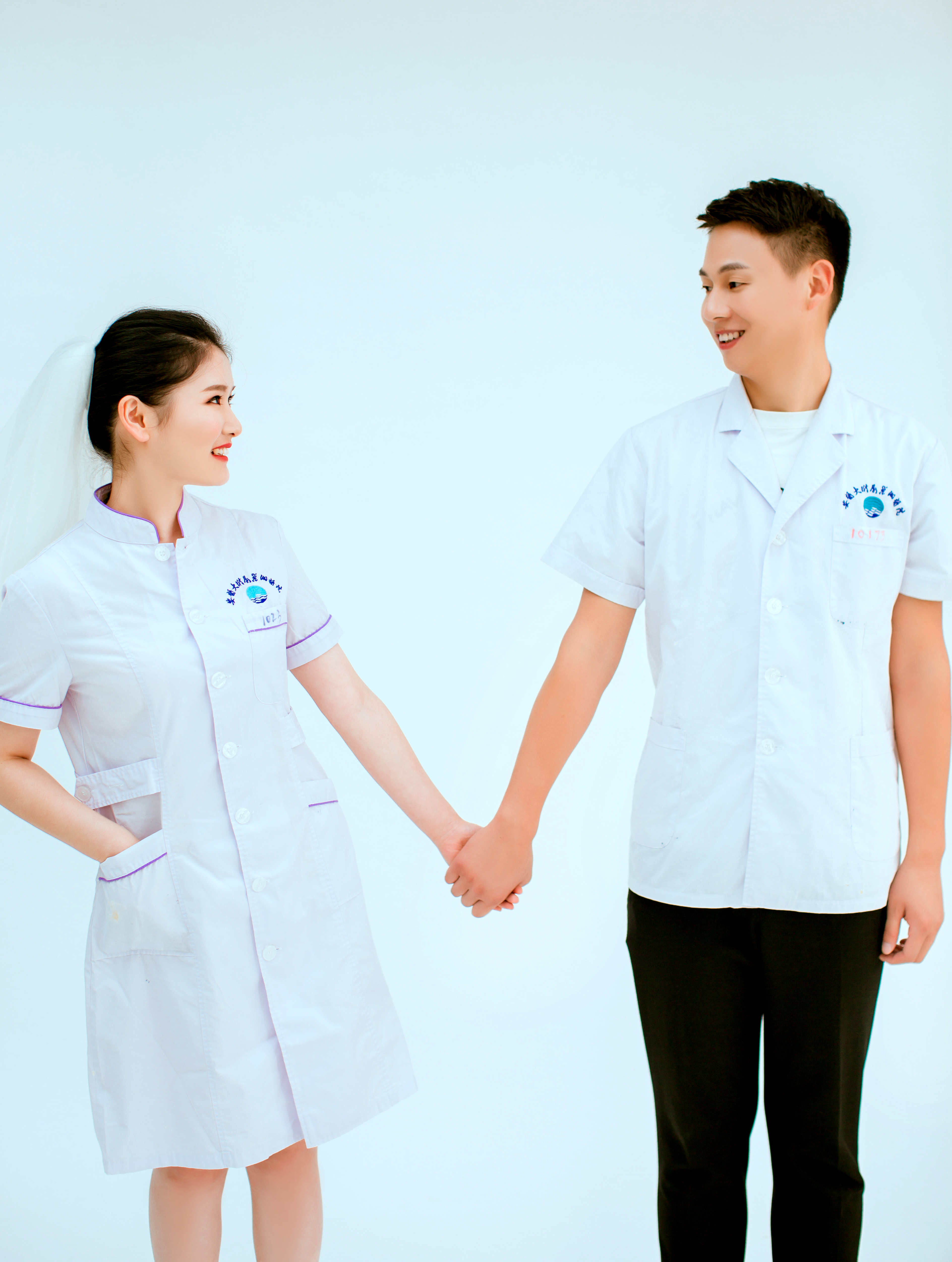 他的未婚妻顧佳男是該院脊柱外科的護士,蚌埠人,93年出生。小姑娘性格樂觀,非常愛笑,有着一手好廚藝。他們在工作中相識相戀,並最終走到了一起。他們的婚紗照,還特別穿了護士服拍了一套。對於他們來說,護士服是神聖的,穿上去就意味着責任,肩負着使命。