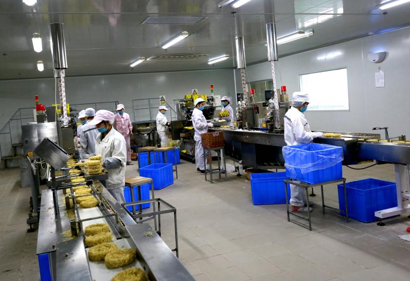 已復工的金光食品公司里,工人們有序投入工作