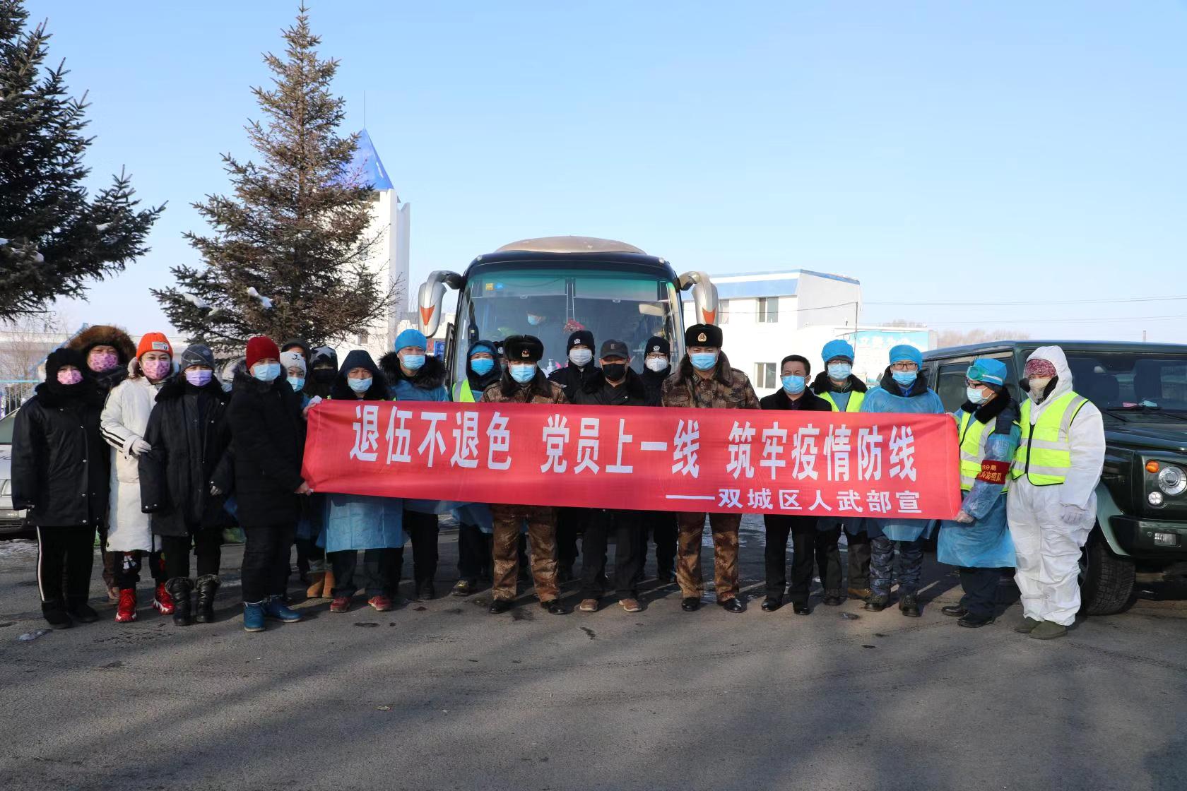 據了解,這是在雙城區抗擊疫情工作人員嚴重不足的情況下,該區人武部發出了「退伍不褪色 黨員上一線 築牢疫情防線」活動倡議,號召廣大退役軍人組建一支由退役軍人和黨員組成的「抗擊疫情服務隊」。這支百人突擊隊,布控在該區十個重要防控卡點上。大年初五,承旭街道支部委員劉雨新接到群發《通知》後,他彷彿回到了部隊,立刻整理行裝,安頓好家屬,告別父母妻兒,驅車從幾十公里外的鄉下第一時間主動請纓要求到街道報到。劉雨新每天開着自己的私家車,又安裝一個車載喇叭,懸掛醒目的宣傳標誌,和村(社區)幹部,鄉村醫生走街串戶全面排查摸清流動人員、近期返鄉人員的相關情況,做到排查、防控無遺漏。他說「我曾經是軍人,現在是黨員!面對疫情,我選擇迎難而上,衝鋒在前,隨時準備為黨和人民犧牲一切。」