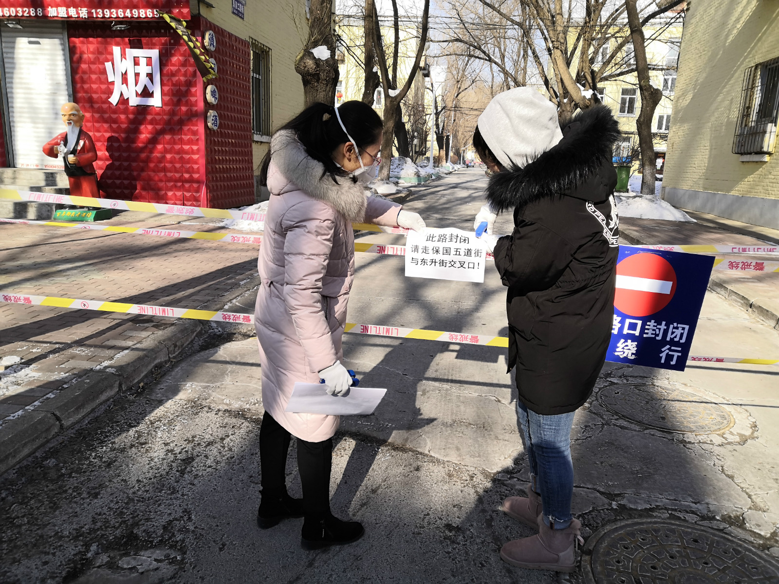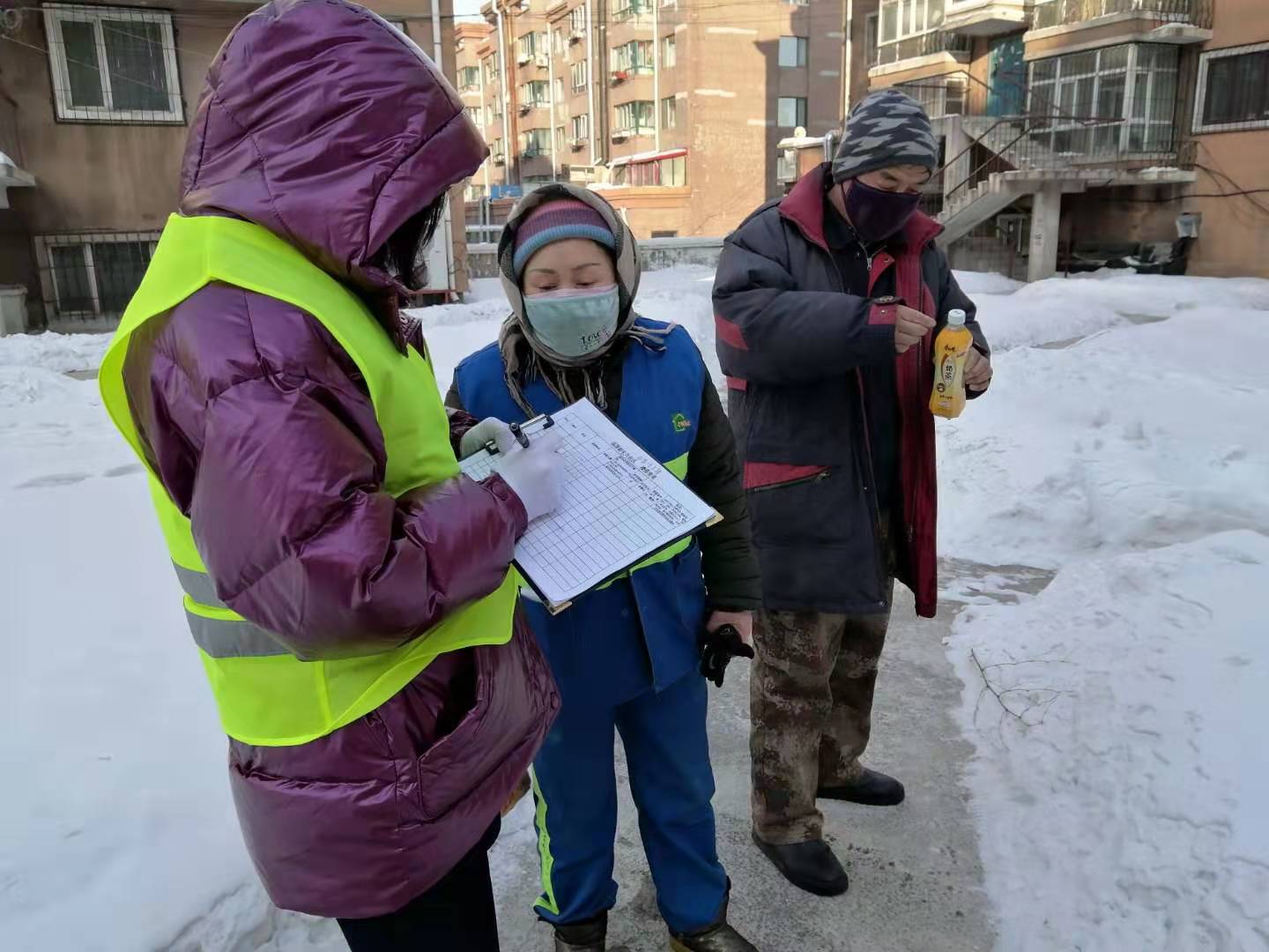 酒精運送車一到,60名機關志願者自發分成十個志願小隊,由各隊長帶領,將酒精從大車上分裝到各辦事處車中,然後隨車送到社區,再幫助安全卸載。「志願者運輸隊」里有剛參加工作不到一年的「新兵」,也有還差三個月就退休的「老革命」,有年富力強的小夥子,也有看上去弱不禁風的大姑娘。雖然外面寒氣襲人,但是所有人不分年齡、不分職務,有條不紊地開展工作。在做好安全防護的前提下,有餘力的志願者還協助社區網格員和工作人員進行入戶分發。在發放過程中,志願者們耐心向居民講解酒精存放和使用方法,並及時向老百姓宣傳哈爾濱市第8、第9號公告,號召居民齊心協力,打贏疫情防控阻擊戰。