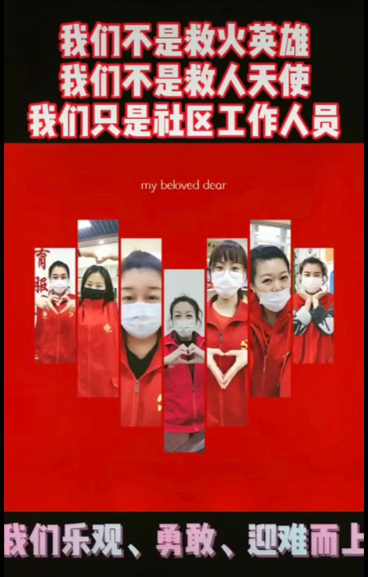 我們是一群打不倒的女戰士,面對疫情逆流而上,堅強的外表下卻有一顆柔軟的心,會因為居民暖心的話而淚流滿面再苦再累都能抗,被理解才能讓我們充滿戰鬥指數,無數個日日夜夜都在平安中度過,歲月靜好,只因為有人替你負重前行!