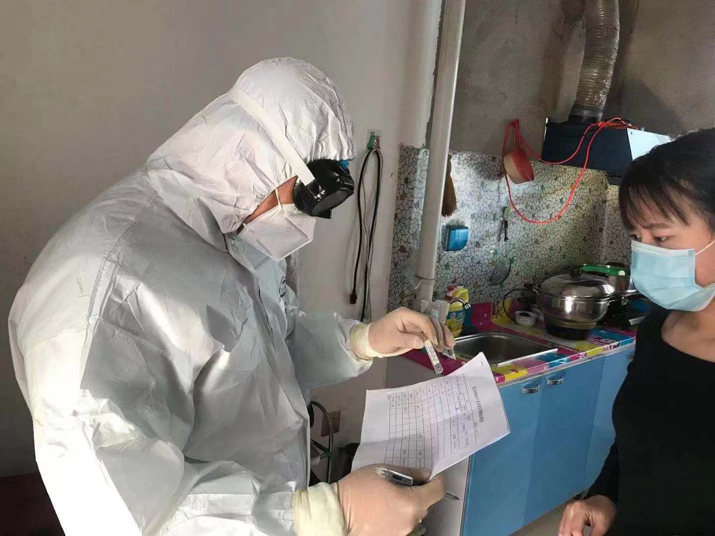 權華每天需要為10名居家隔離的武漢返鄉人員及密切接觸者入戶監測2次,測量體溫,檢查眼結膜、呼吸道、消化道等異常癥狀和體征,為居家隔離者送去消毒藥劑、食品、日用品,帶出他們的生活垃圾,消毒後投入垃圾車。晚上還要在留置觀察區值班,處置轉入留置觀察區的患者。