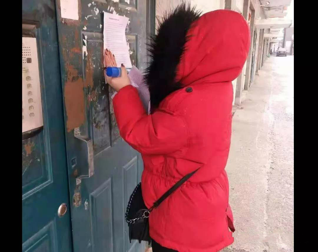用走「斷」腿、磨「破」嘴來形容海倫市安全社區殘疾人專職委員王雪這幾天的工作量一點也不為過,王雪同社區二名工作人員共同負責安全社區兩個居民小區2000多戶居民的排查工作,每天一大早,就會拿起電話,逐樓逐單元打電話,了解家庭成員信息,有無返鄉外來人員,並叮囑居民不要外出,勤洗手,多通風,如有重要的事情出門必須戴口罩等等。實在電話聯繫不上,就到家裡開展走訪調查,確保不落一戶不漏一人,全部排查核實到位。