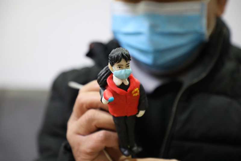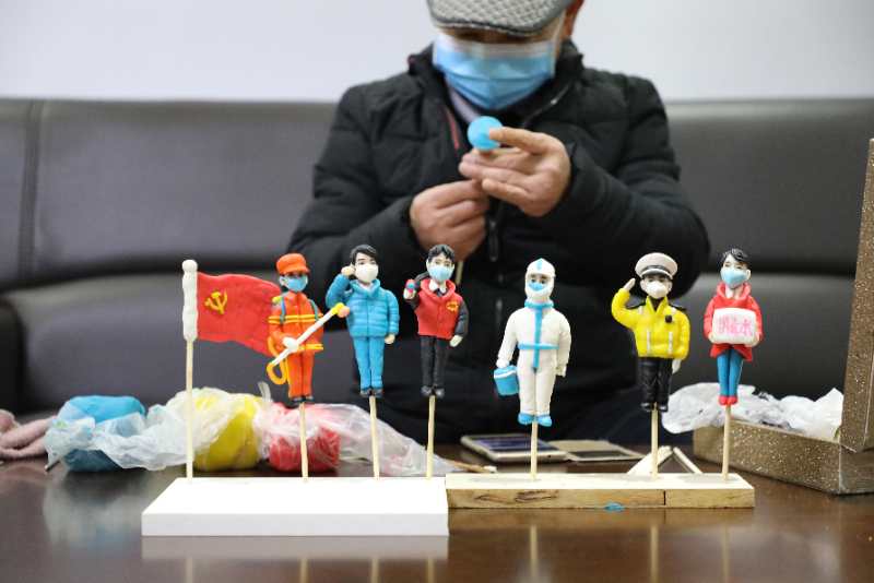 疫情爆發後,一直「宅」在家中的張綠林,為全國人民齊心協力抗擊疫情所打動,夜不能寢,決心用要創作抗疫面人作品,用非遺文化力量助力打贏疫情防控阻擊戰。