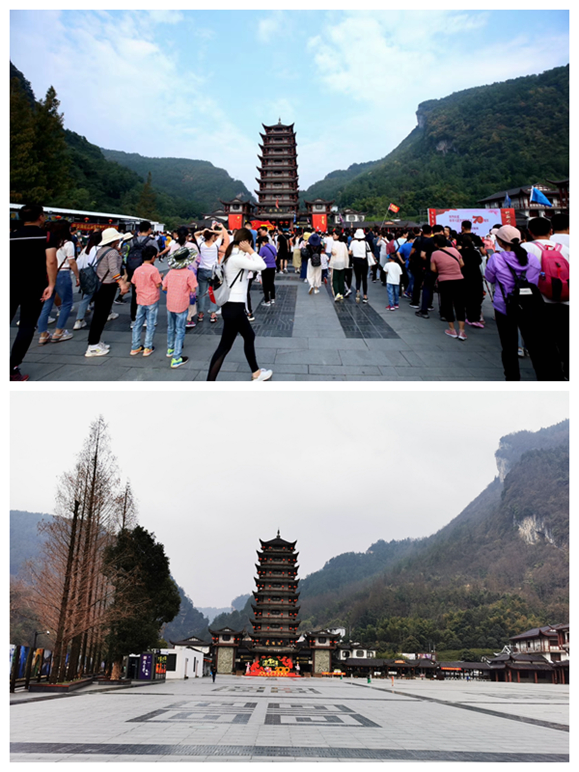 疫情就是命令。從正月初二開始,包括核心景區、黃龍洞、寶峰湖、張家界魅力湘西、溪布老街等在內的武陵源所有景區及索道、電梯、觀光電車、環保車等旅遊交通工具全線關閉,並取消文化進景區、遊人體驗土家趕年等一切聚集型活動,按照疫情防控要求各景區企業舍小利顧大局,迅速從旅遊旺季接待模式轉入緊急疫情防控模式。據武陵源區委旅工委辦公室主任彭斌介紹,從正月初一到現在,在區委旅工委的安排部署下,全區各景區企業、賓館酒店、演藝場所等在“閉關”的基礎上進一步強化內部管控,嚴格落實人員檢查、場所消毒等各項疫情防控措施,由此換來了截至目前武陵源全區無一新型冠狀病毒肺炎確診病例的良好形勢。