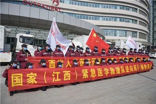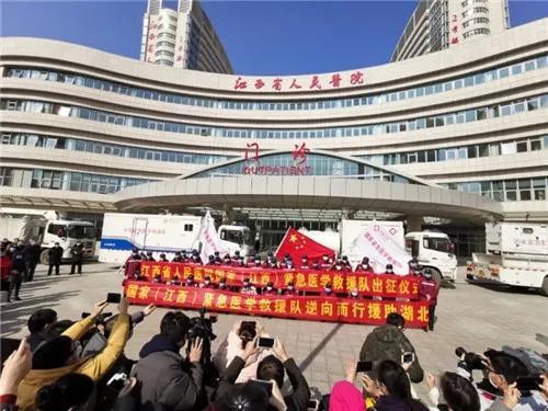 【香港商報網訊】記者 操端晶 報導:2月9日上午11時,江西省人民醫院紅谷灘院區門前,激昂的宣誓聲在這裡響起,他們是即將出征的國家緊急醫學救援隊(江西)隊員。此次出征,一共派遣了41名隊員,其中31名醫務人員來自省人民醫院,他們中有內科醫生、外科醫生、院感醫生、護士等,其他10名為物資保障隊員,他們來自省直單位和有關地市。救援隊中,還有10輛特種車輛,包括手術車、重症監護車、病房車等,車輛上配備了手術台、呼吸機、B超等診療設備,整個車隊相當於一家流動的二級醫院。