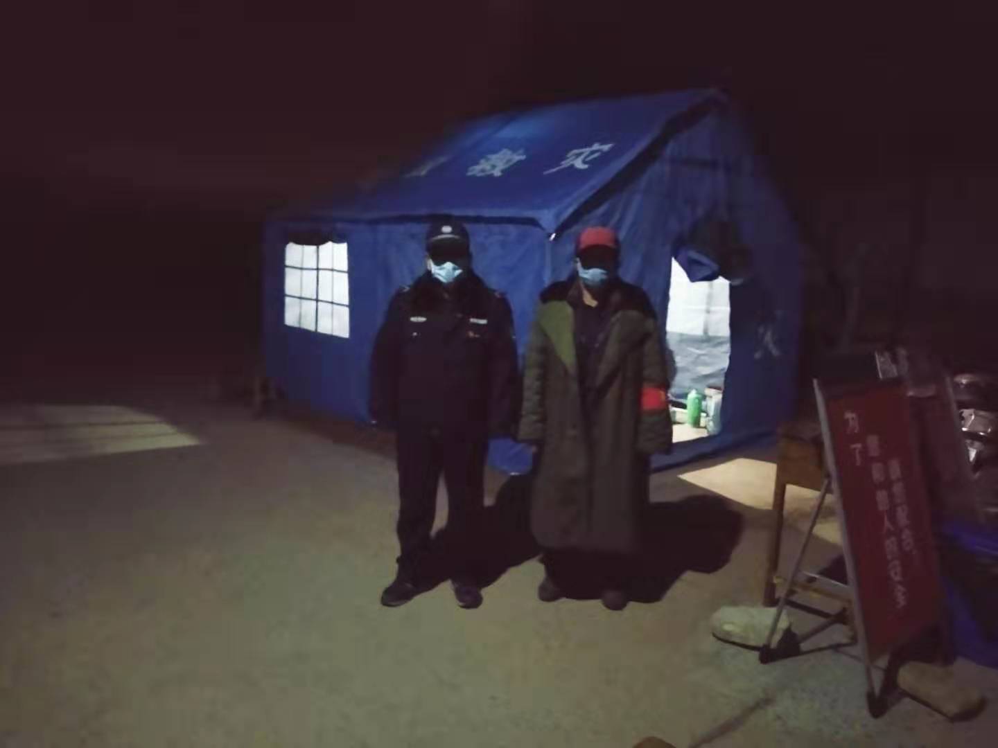 庚子鼠年,正月十三的一場小雪,氣溫降到了零下2度,北風裹着雪花,直往人脖領里鑽。百十斤的肉身,早已在連日來的日夜堅守中凍透。於是,這本來不大的一場雪,直接就在全縣大大小小的卡口,催生出一個個的帳篷來,點上燈,從門縫裡、從篷布上透出星星點點、讓人感到溫暖的光來。